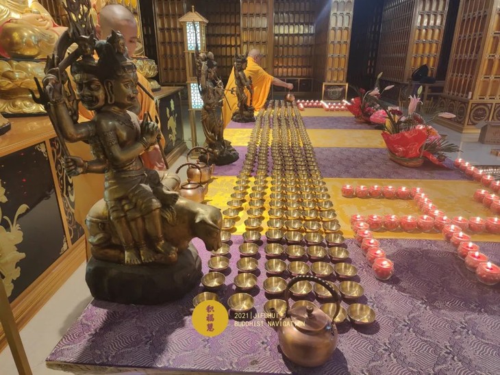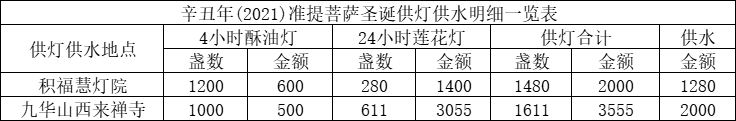 值此殊胜功德日,应大众所请,积福慧、佛教导航及江浙佛教联合九华山道场启建准提菩萨圣诞供灯供水共修。共修自2021年4月17日始,到2021年4月27日23时止,共计11天。同修随喜供灯款5555元、供水款3280元。