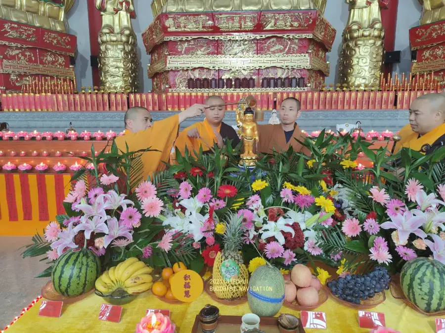 2021年5月19日,辛丑年四月初八,是释迦牟尼佛圣诞,亦名浴佛节。两千五百多年前,佛陀诞生,感得大地震动,九龙吐水为之沐浴。佛教徒为纪念佛陀诞辰就沿用此形式举行“浴佛法会”,以香汤灌沐太子像,这便是浴佛节的由来。