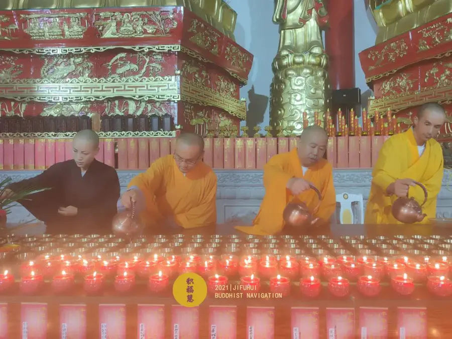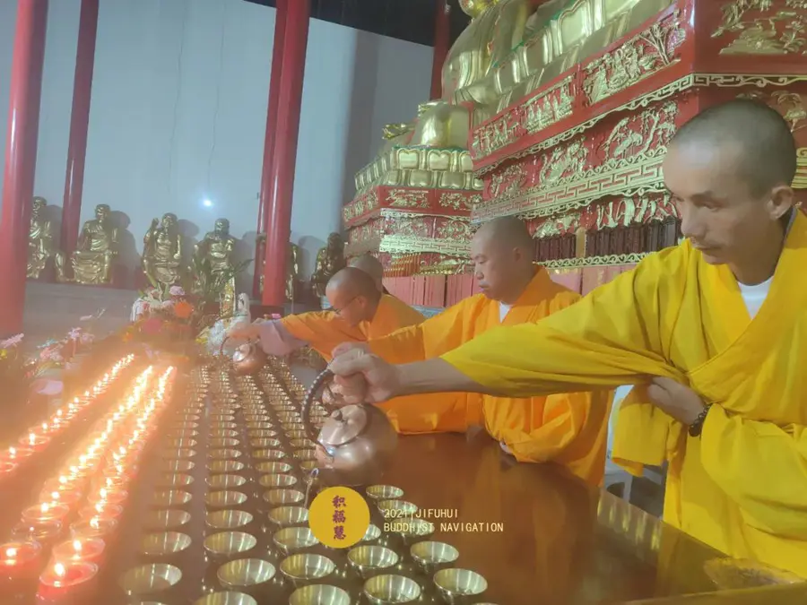 2021年7月28日,观世音菩萨成道纪念日当天,积福慧在积福慧灯院、九华山道场启建供灯供水共修,如理如法按次第起供,直至8月3日供圆满。