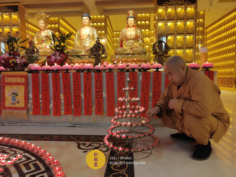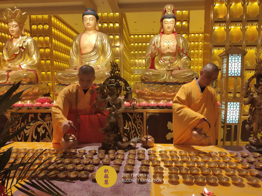 2021年11月4日,药师佛圣诞,积福慧在积福慧灯院、九华山道场启建供灯供水共修,如理如法按次第起供,直至11月10日供圆满。
