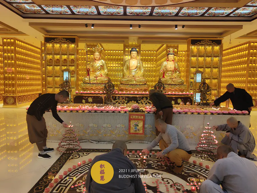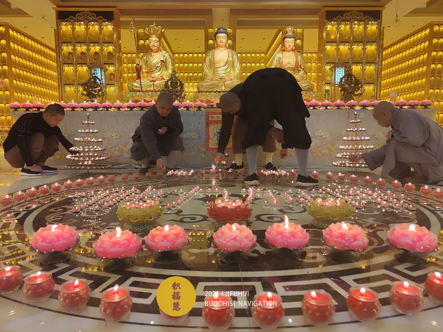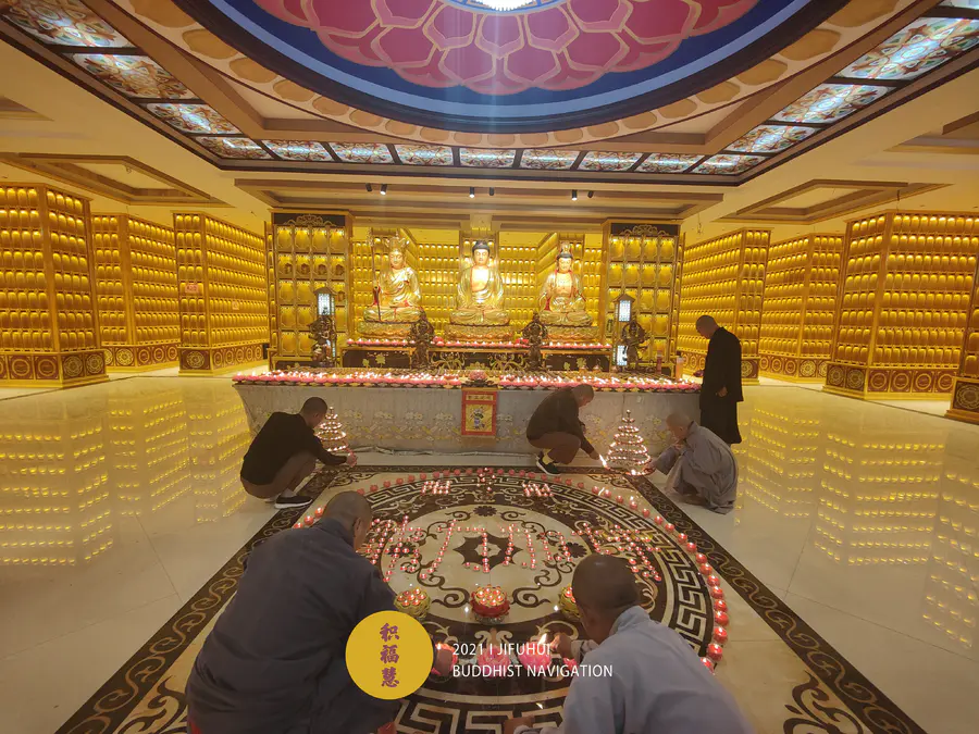 2021年11月19日下元节,积福慧在积福慧灯院、九华山道场启建供灯共修,如理如法按次第起供,直至11月25日供圆满。