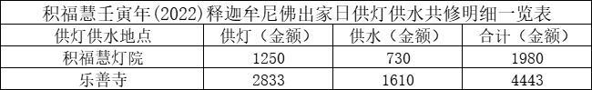 积福慧以此壬寅年释迦牟尼佛出家日供灯、供水功德悉皆回向给出资者、点灯供水者、乃至一念随喜者,祈愿众等身心自在,运程顺遂,早消业障,早闻佛法,福德增上,善根增长,自利利他,吉祥圆满。祈愿佛陀正法光明遍照寰宇,三灾不起,无复厄难,人心向善,广度众生。