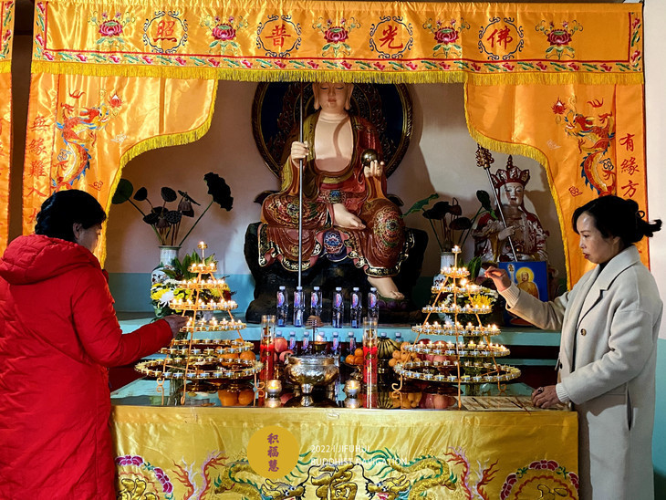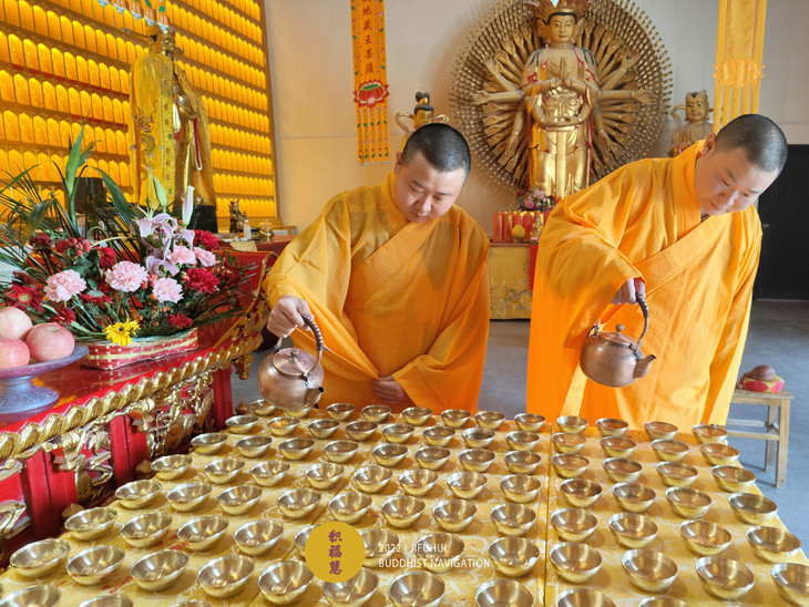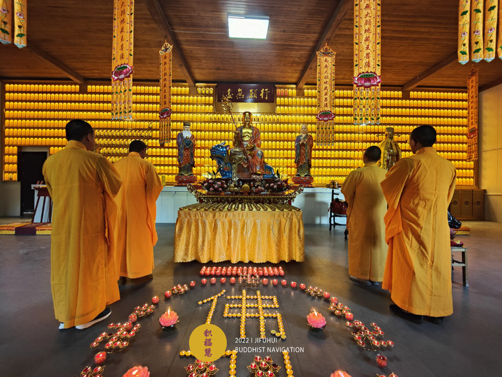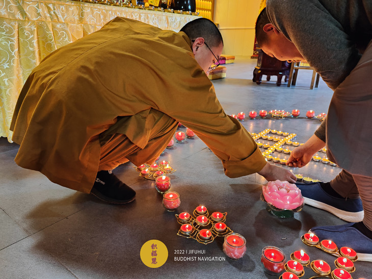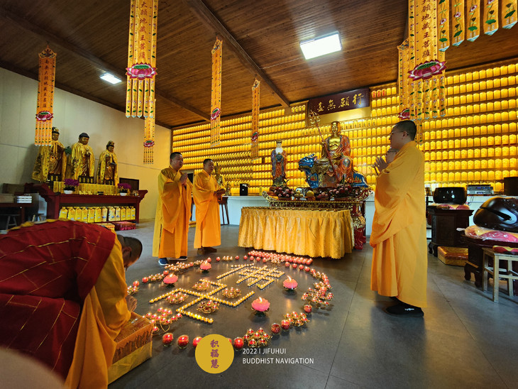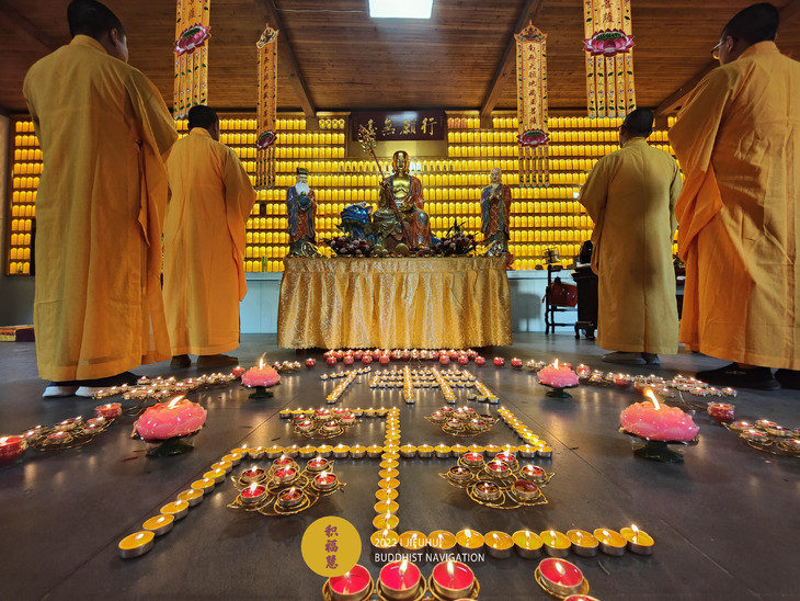 2022年4月5日,积福慧在九华山道场、曲靖道场启建壬寅年清明节供灯、供水共修,如理如法按次第起供,直至4月11日供圆满。