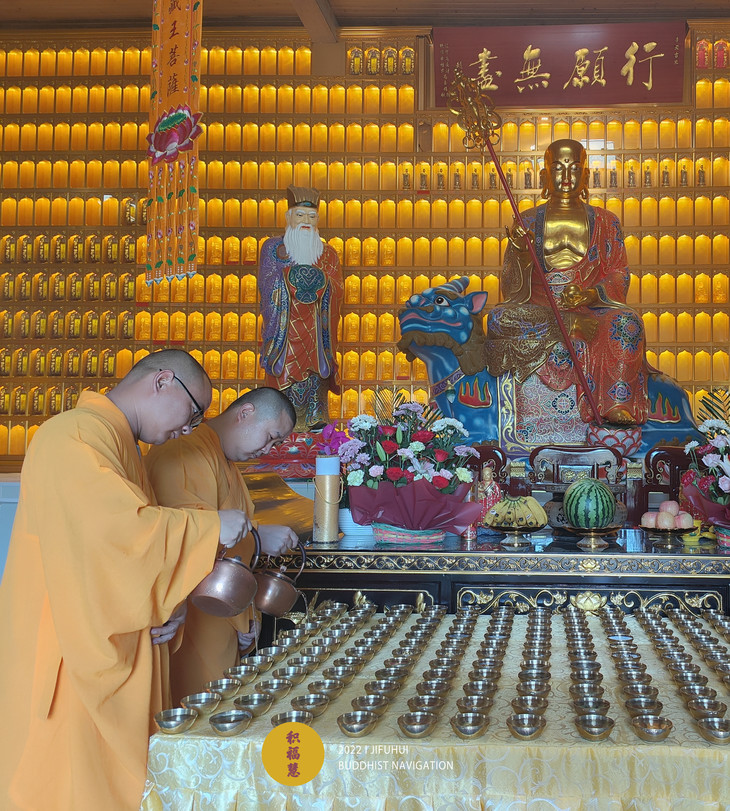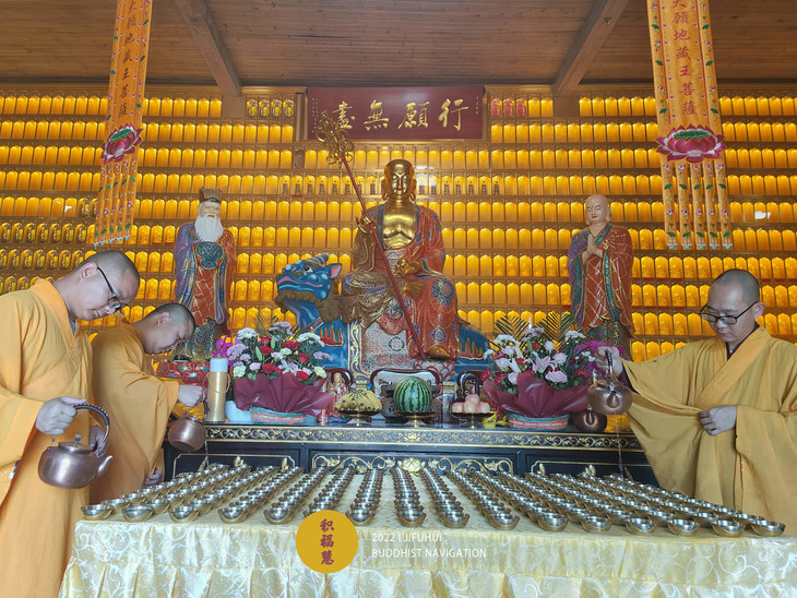 2022年6月11日,积福慧在九华山道场、曲靖道场启建壬寅年伽蓝菩萨暨武财神圣诞供灯、供水共修,如理如法按次第起供,直至6月17日供圆满。