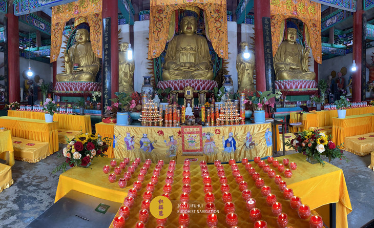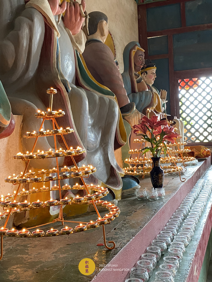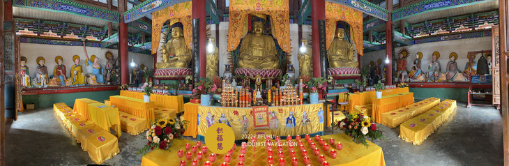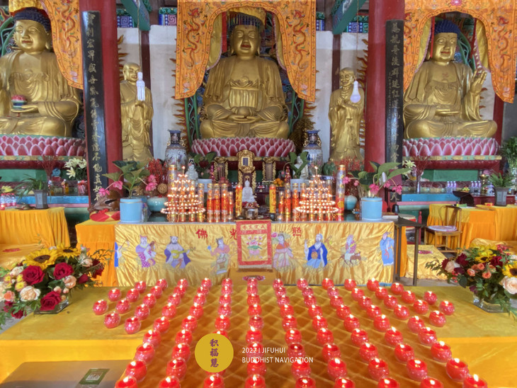大雄宝殿内·虔备香花,种种妙供。