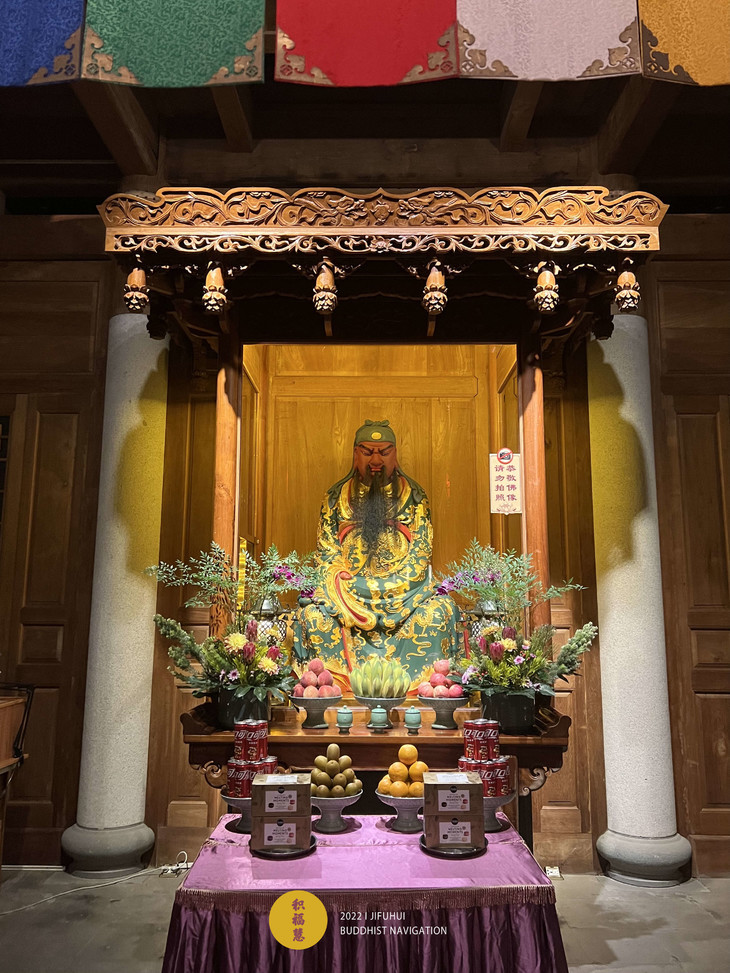 2022年6月11日,壬寅年五月十三,恭迎伽蓝菩萨暨武财神圣诞。“伽蓝”是梵语“僧伽蓝摩”的简称,通指寺院道场。依佛经中记载,有十八位诸天善神保护寺院道场,统称为十八伽蓝神。自天台宗智者大师尊关羽为伽蓝菩萨后,各寺庙纷纷效仿,故现今丛林多以关公形象为伽蓝菩萨的代表。