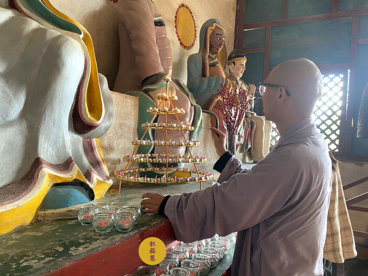 同日,曲靖道场,法师与信众恭敬燃起佛前灯。