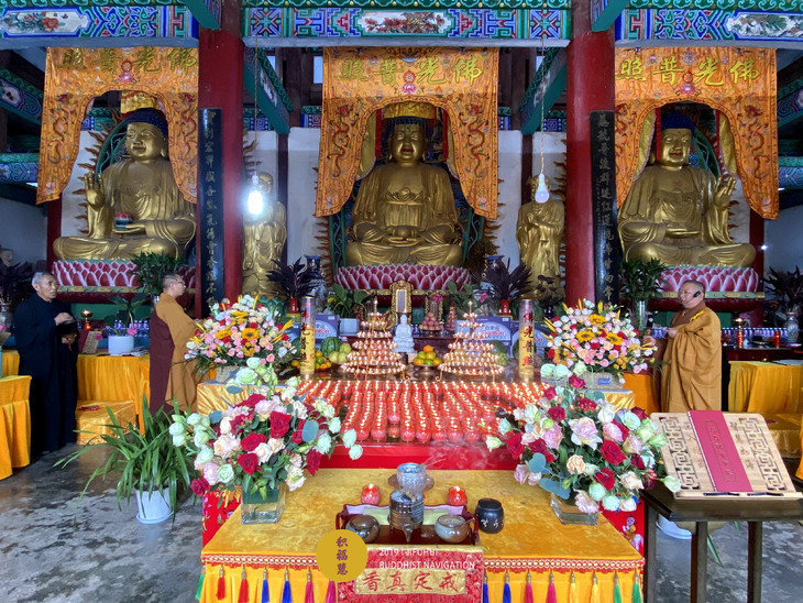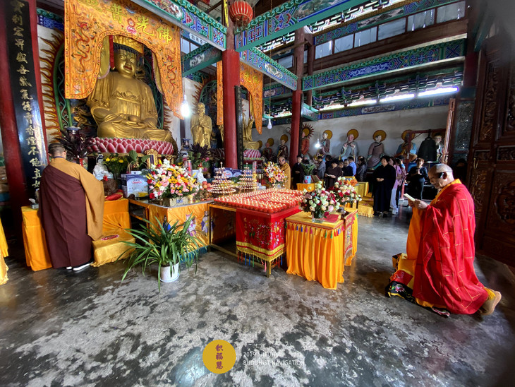 炉香乍热,法号声声,清净梵音响彻庄严宝殿,戒定真香遍熏十方虚空,法师拈香主法,领众诵经持咒。道场庄重殊胜,大众法喜充满。