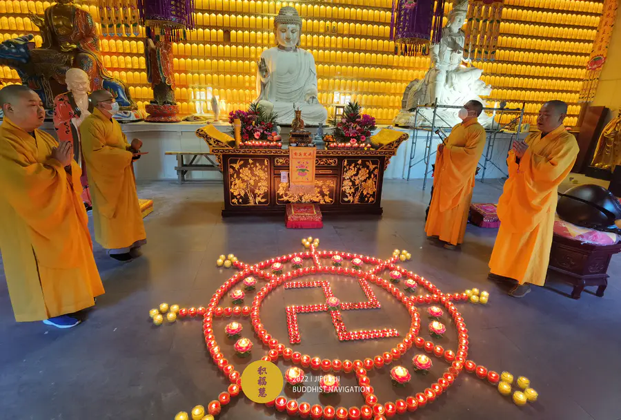 2022年12月18日,壬寅年十一月二十五,九华山道场、曲靖道场启建壬寅年燃灯节供灯共修,如理如法按次第起供,直至12月24日供圆满。