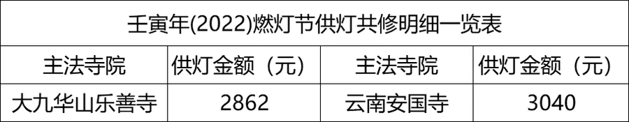 壬寅年燃灯节供灯共修自2022年11月26日始,至2022年12月18日23时止,共计23天,同修随喜供灯款5902元。