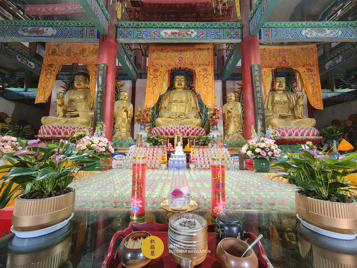 清明节一早,大雄宝殿内,酥油灯已摆放就位。