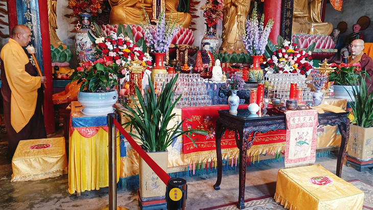 四月初四清晨,云南安国寺大雄宝殿内灯火通明,供灯供水法会有条不紊的准备中。