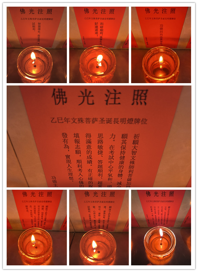 灯是智慧,能破无明黑暗;灯是心光,可照真实前程。愿十方学子以文殊智光,顺利通过人生的每一次考试。
