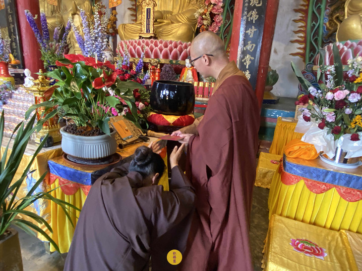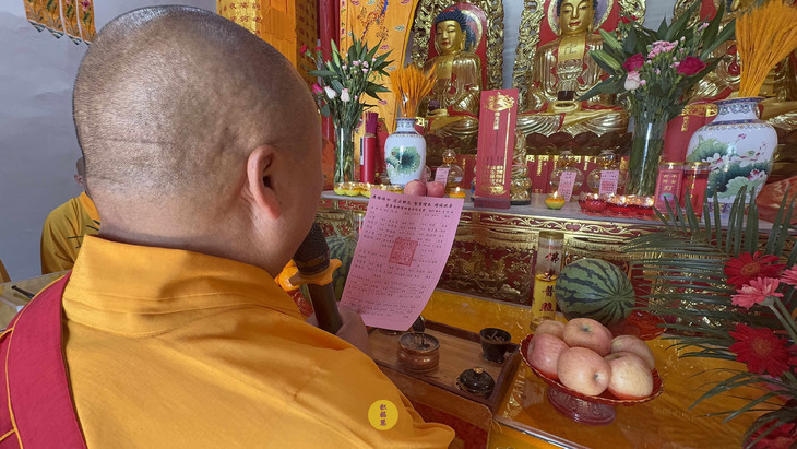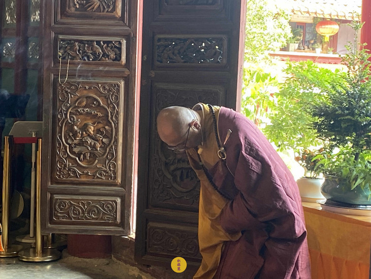 主法法师于佛前回向,祈愿积福慧善信同修,广种福田,消灾解厄,智慧增长,增福延寿。