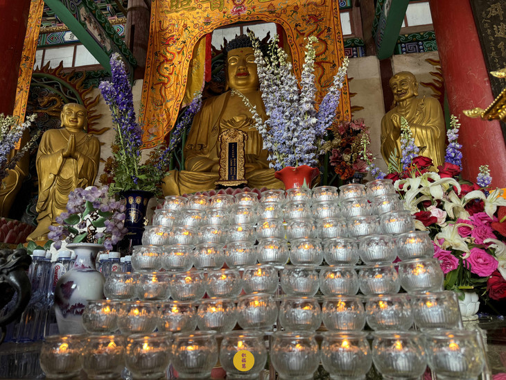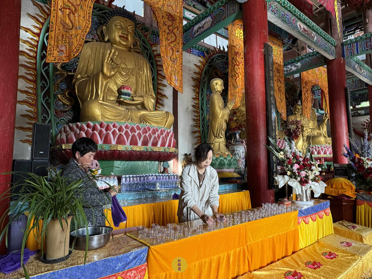 大雄宝殿内,释迦牟尼佛金身庄严。一杯清水,映三千世界;一盏明灯,续万年慧命。