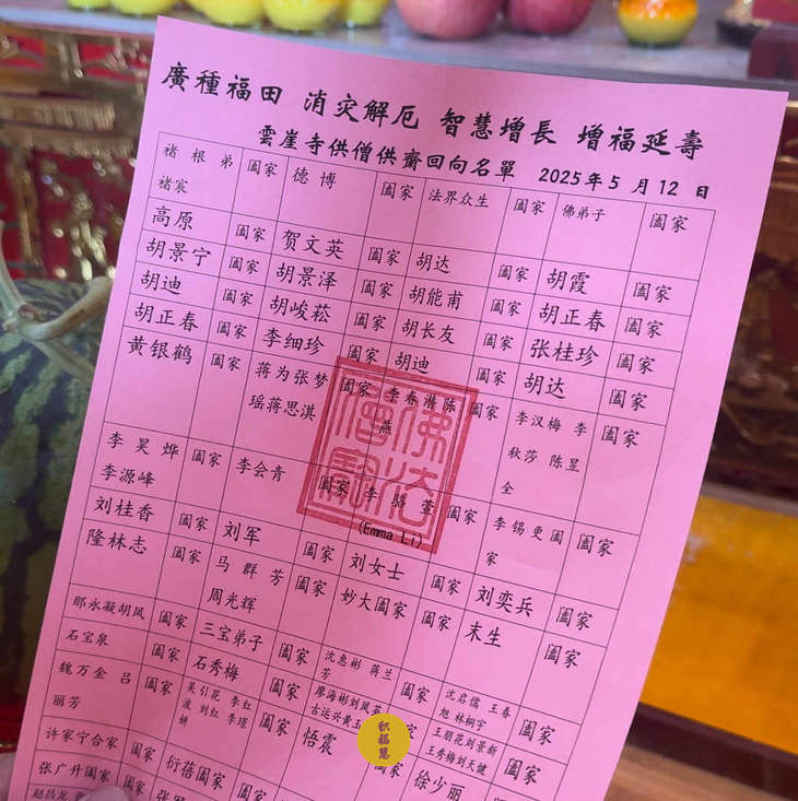 祈愿正法久住,佛日增辉,世界和平,灾戾永息。众生安乐,福慧增长,见闻随喜,同登觉岸。