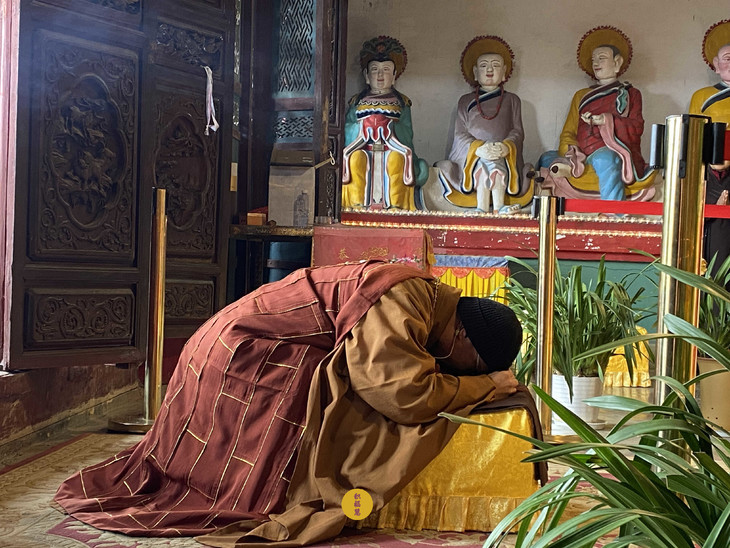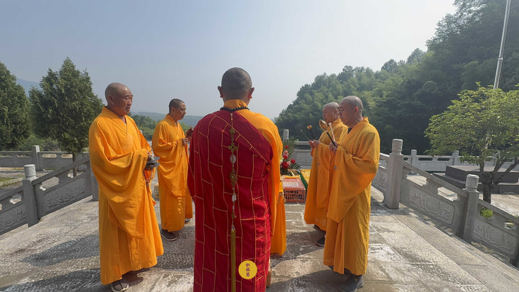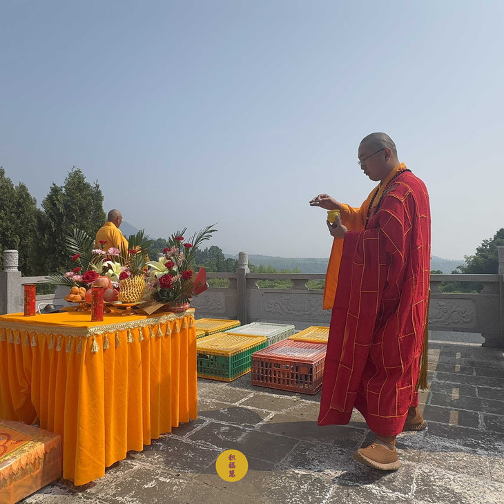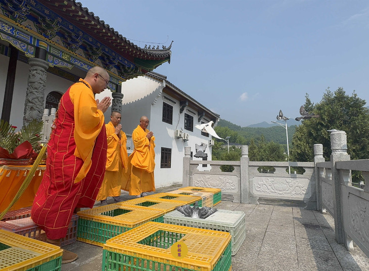 同日,五位法师在安徽云崖寺启建放生法会,践行药王菩萨慈悲济世的精神。