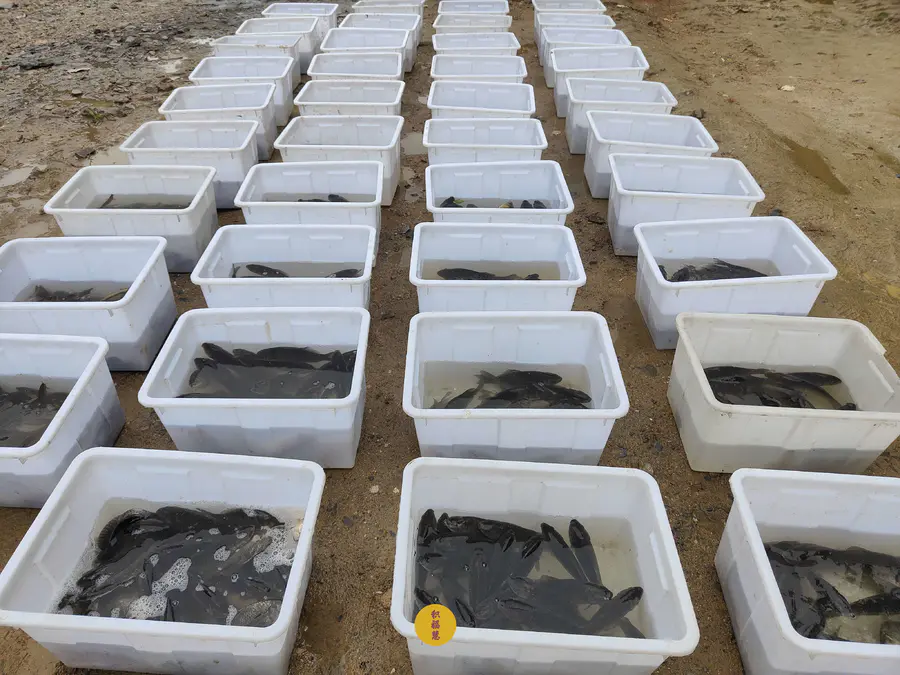 待放生物整齐摆在九华河边