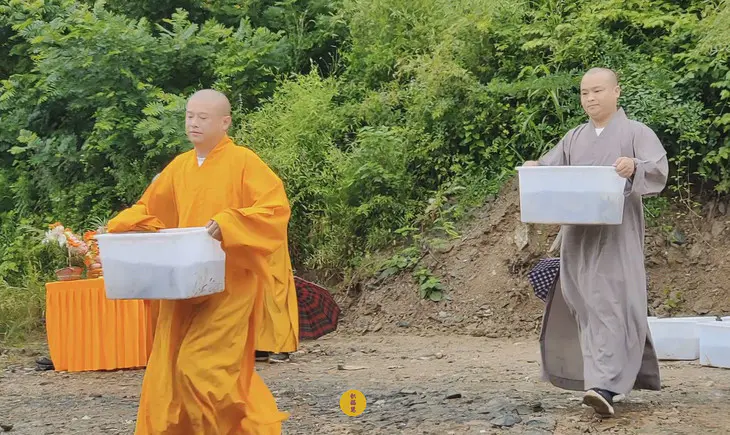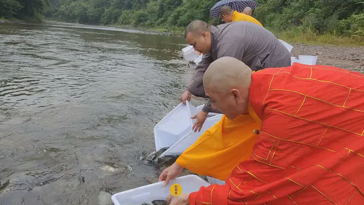 2025年6月15日父亲节,云南安国寺启建父亲节供灯法会,如理如法按次第起供,至2025年6月21日供圆满。同日,安徽云崖寺诸位法师在九华山九华河启建放生法会,放生鲫鱼、鲤鱼、乌龟等水族众生。