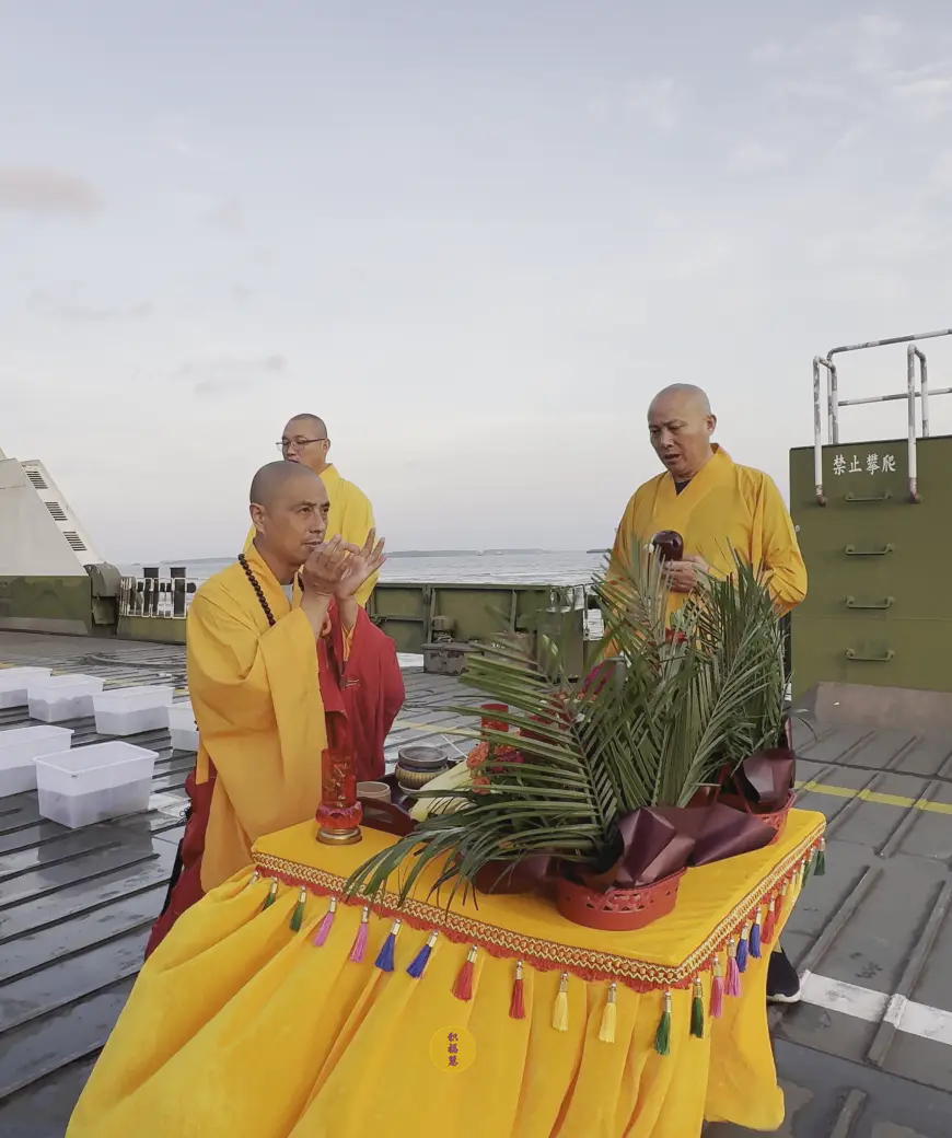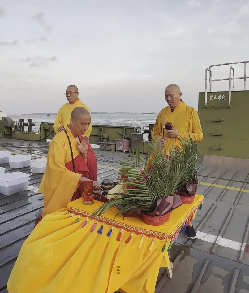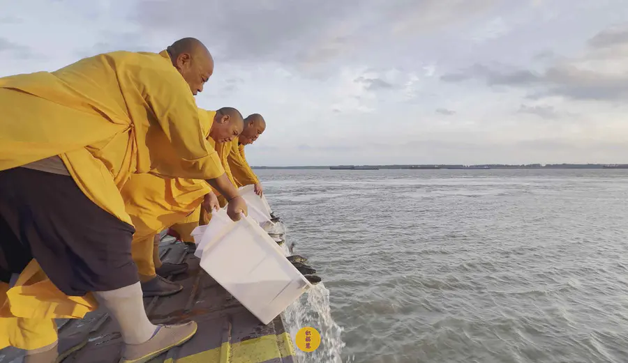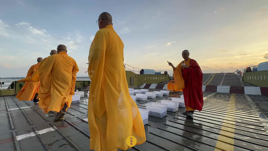 大悲咒的诵念声回荡在江岸,法音穿透云霄,与滔滔江水相应和。
