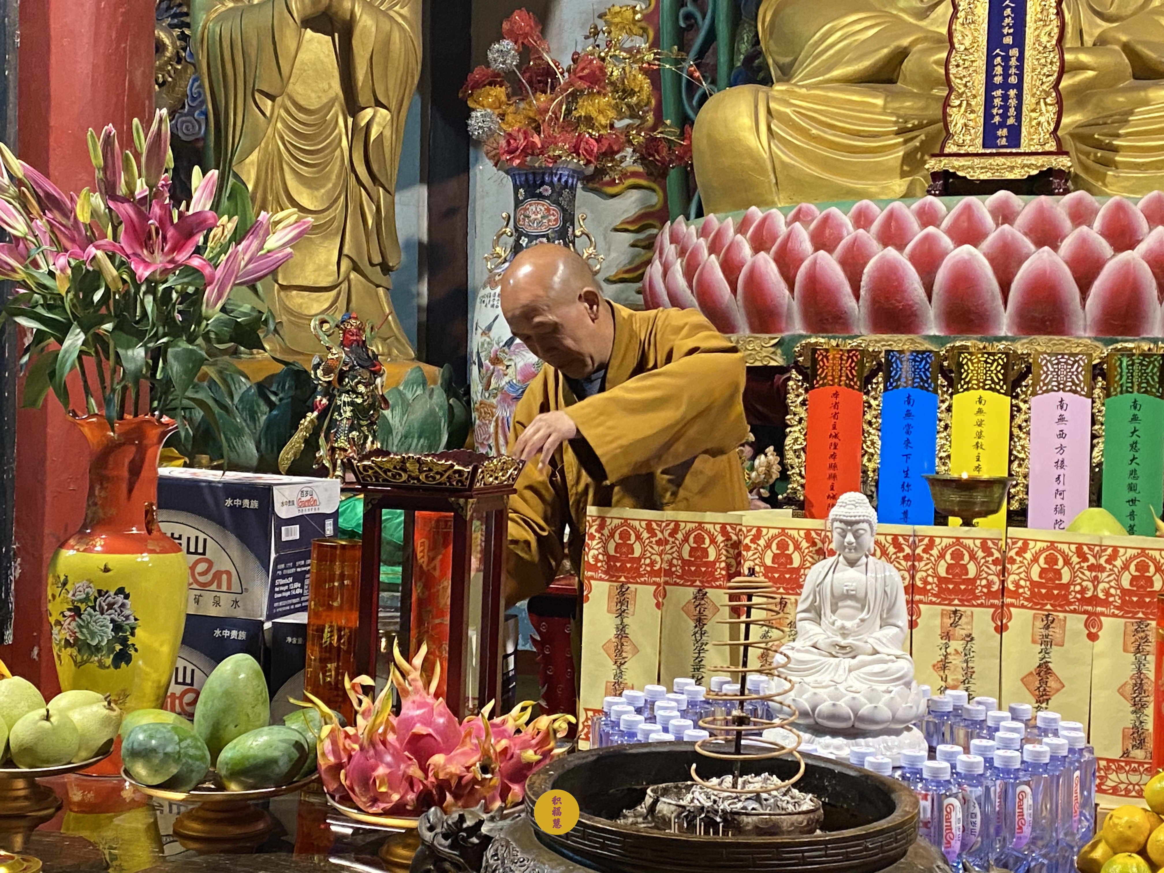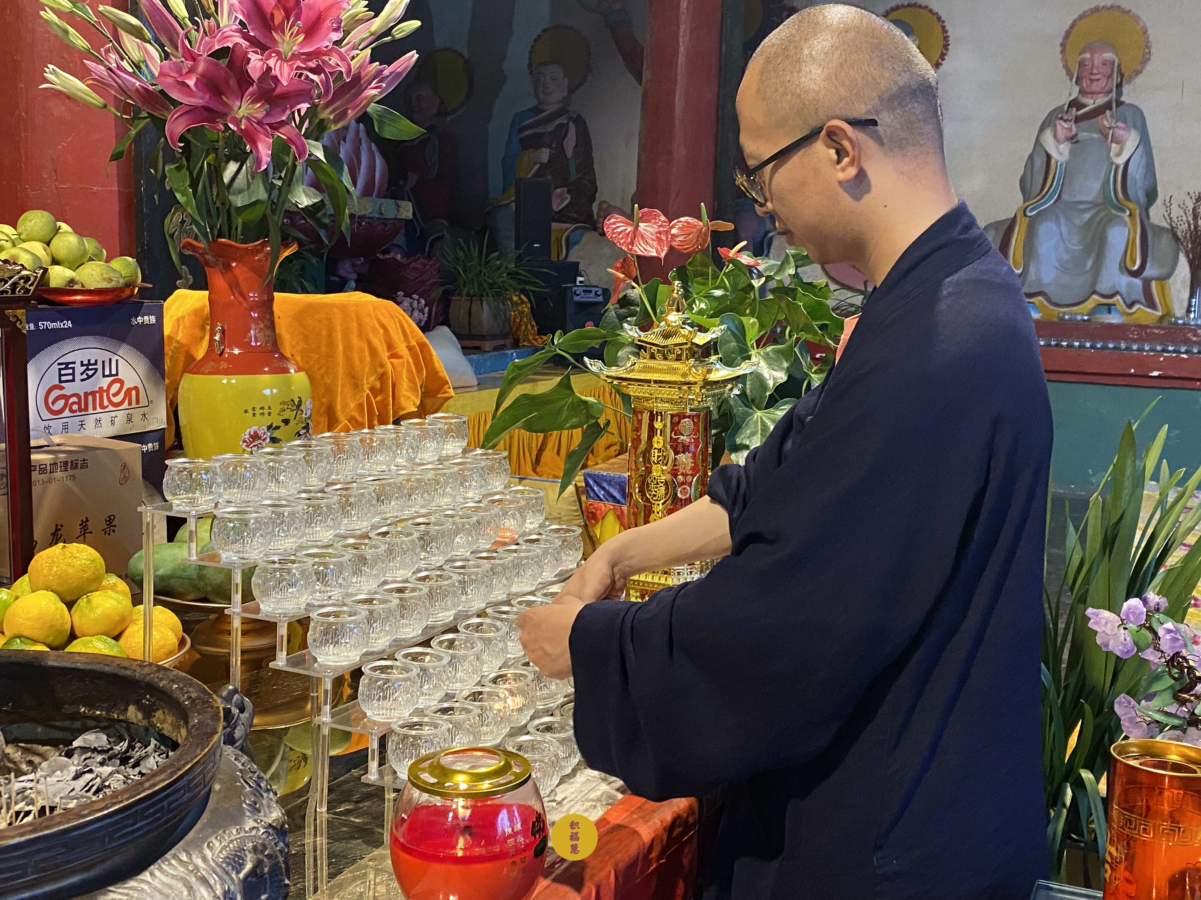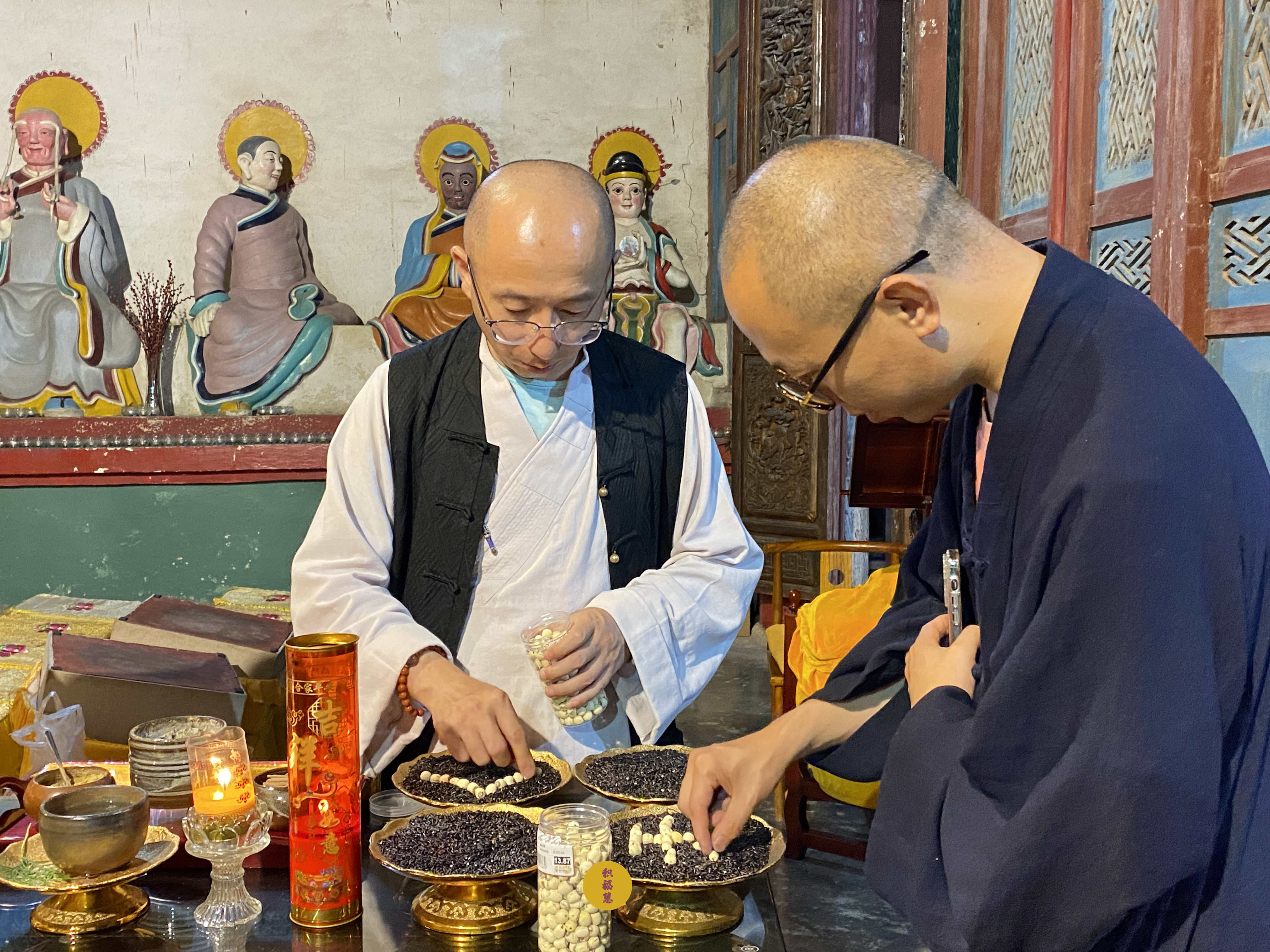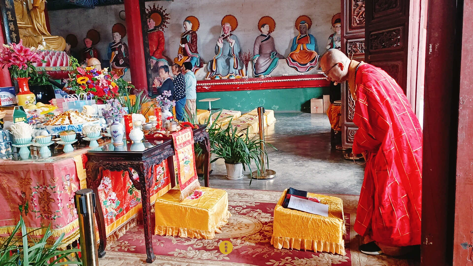 法师领众布置法会供品