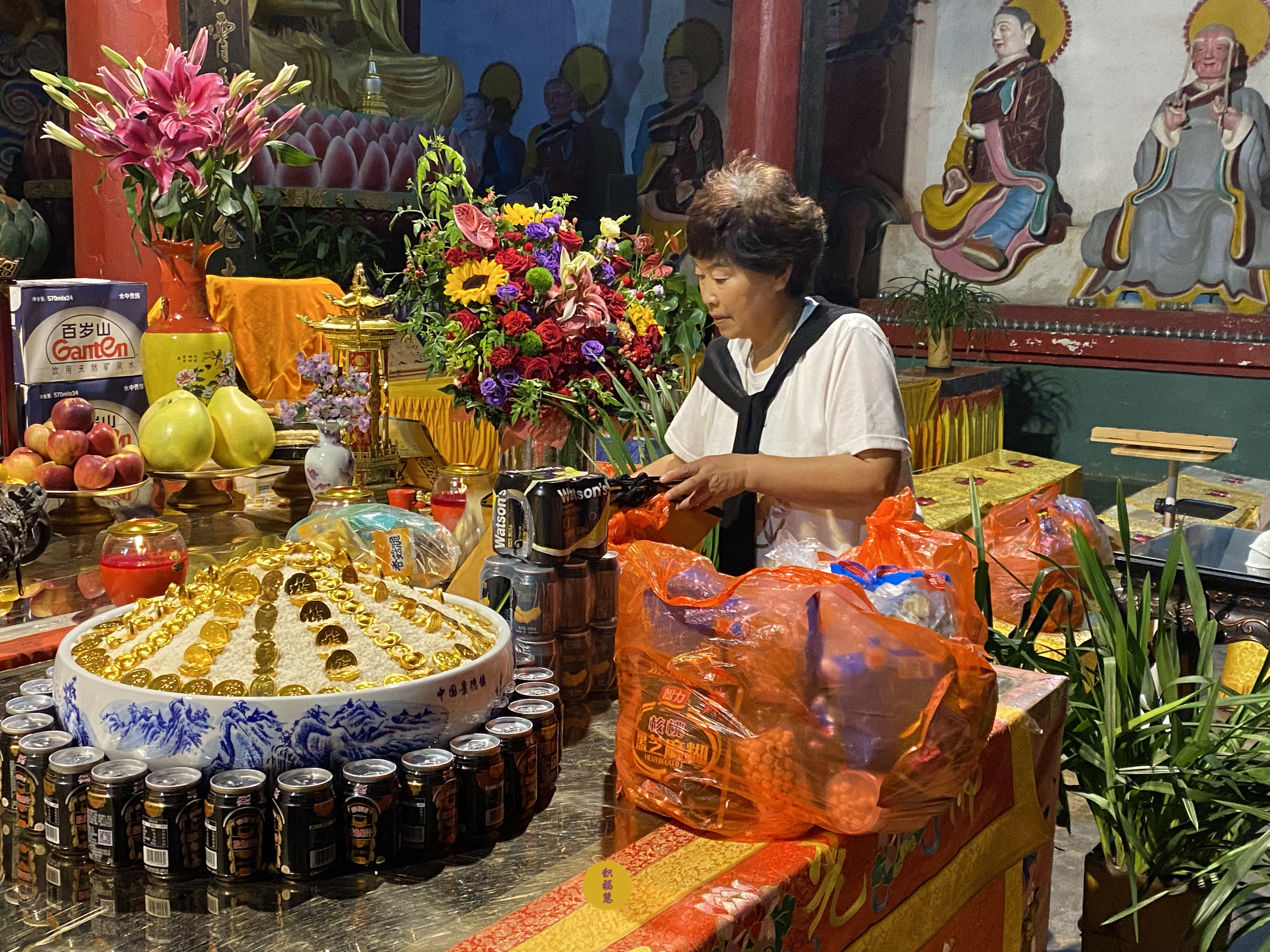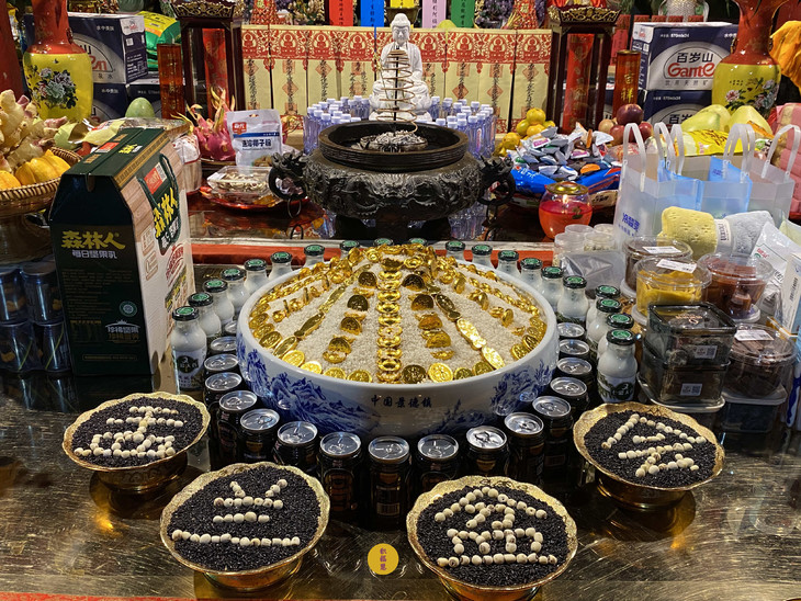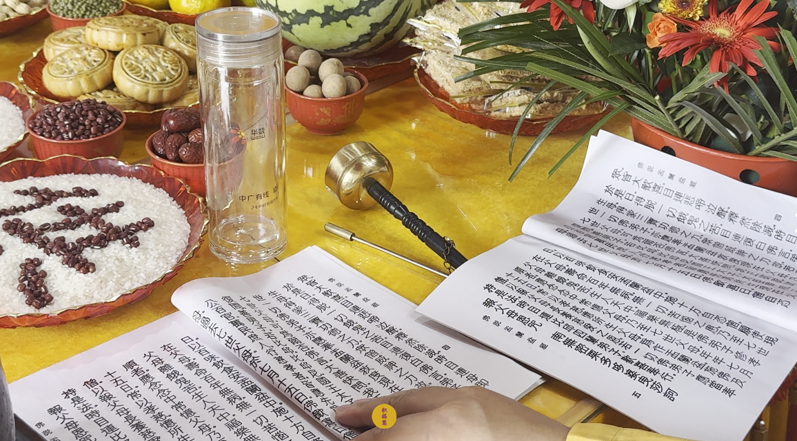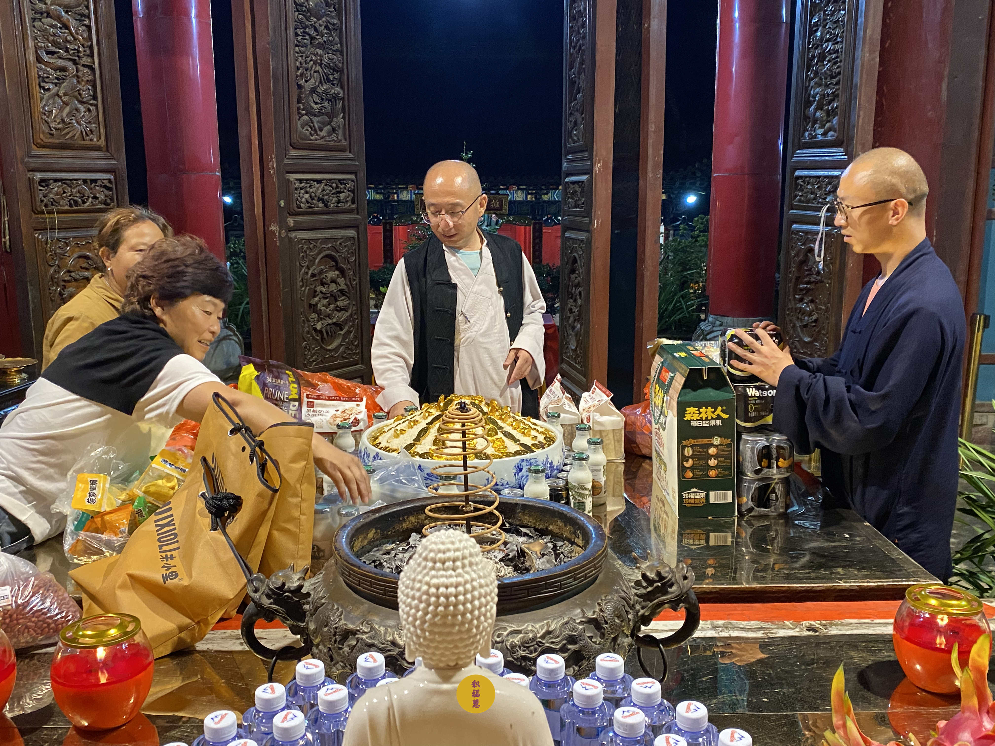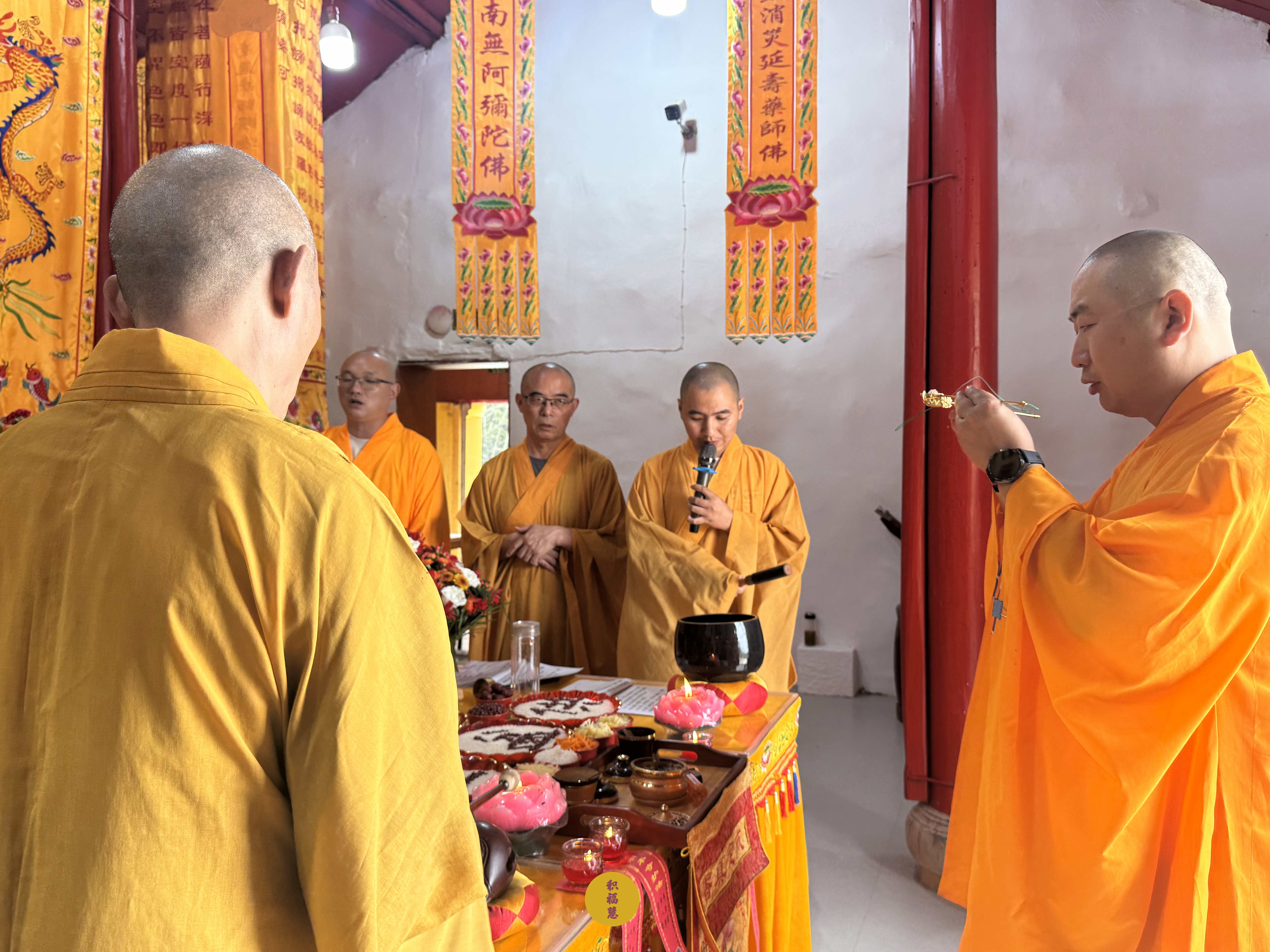 法师领众布置法会供品