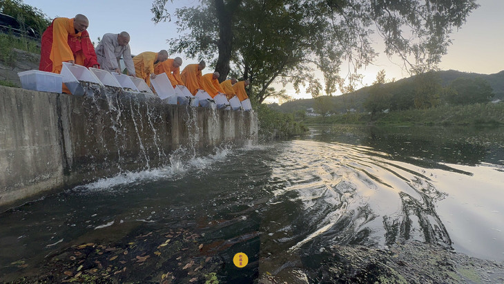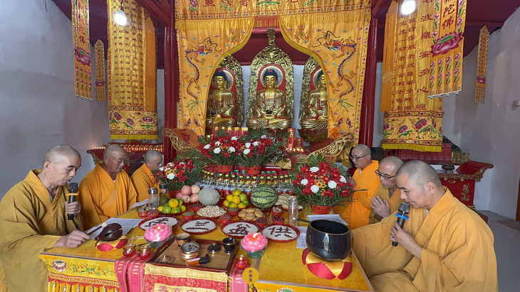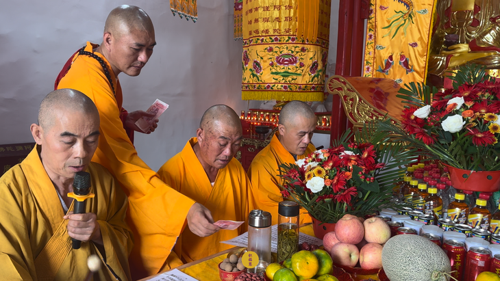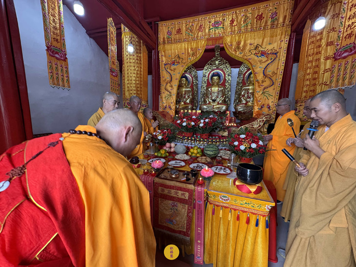 2025年9月6日,乙巳年七月十五,云南安国寺、安徽云崖寺分别启建盂兰盆节暨佛欢喜日供僧供灯法会,如理如法按次第供僧、供灯,酥油灯至2025年9月12日供圆满。同日,安徽云崖寺诸位法师在九华山九华河举行放生法会,放生鲫鱼、鲤鱼等水族众生。