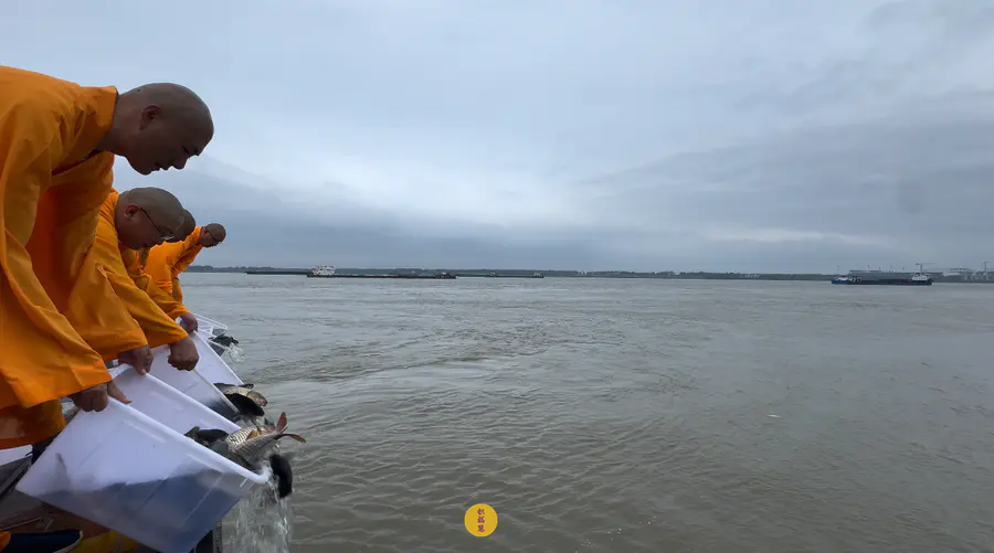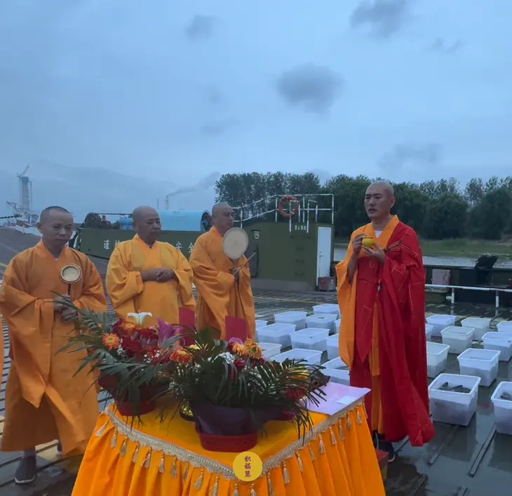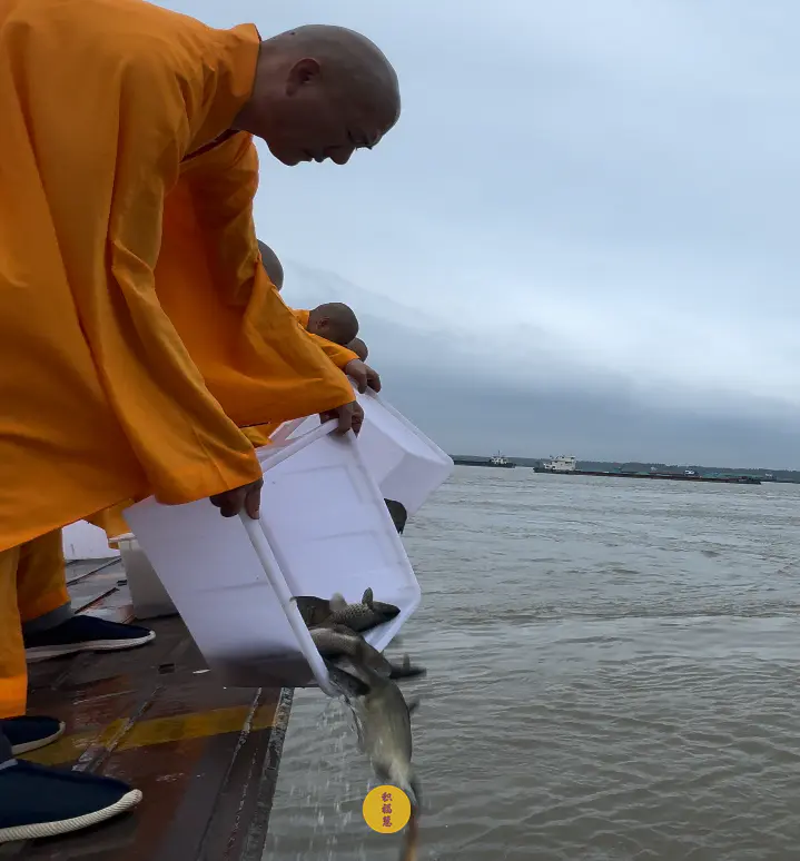 同日,安徽云崖寺在池州市贵池区长江汽车轮渡码头举行放生法会。