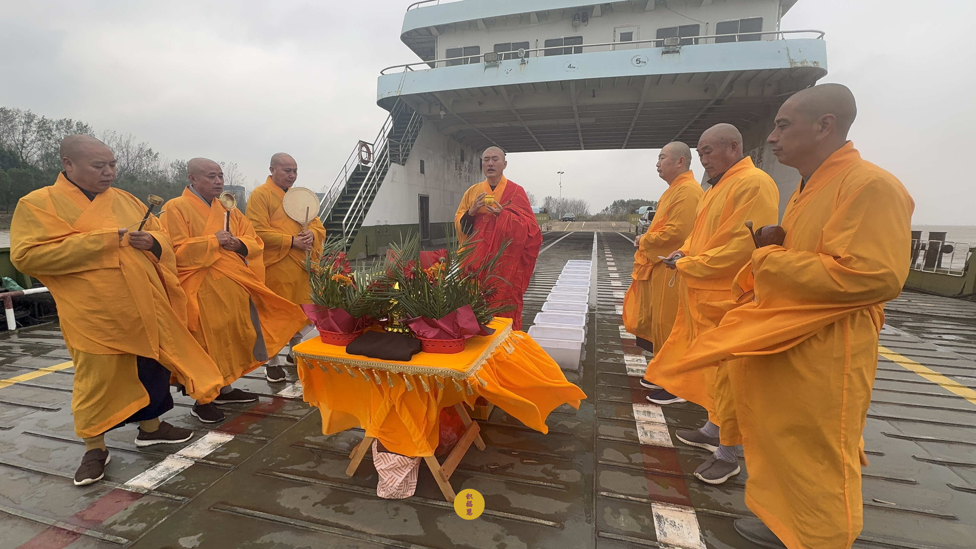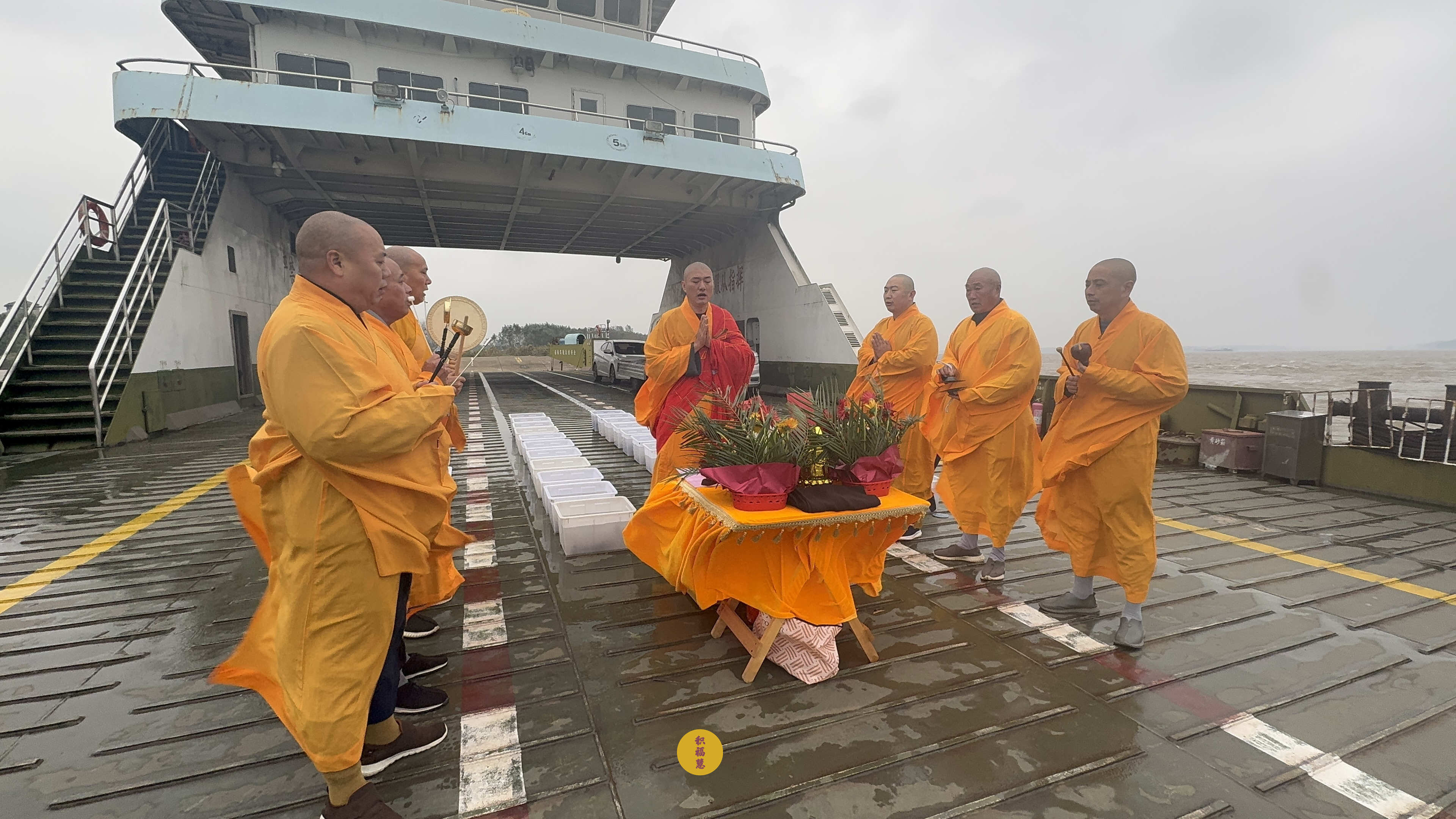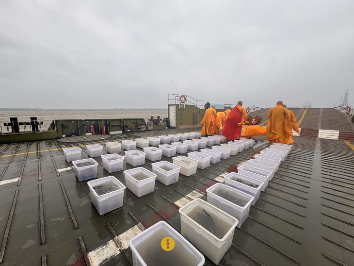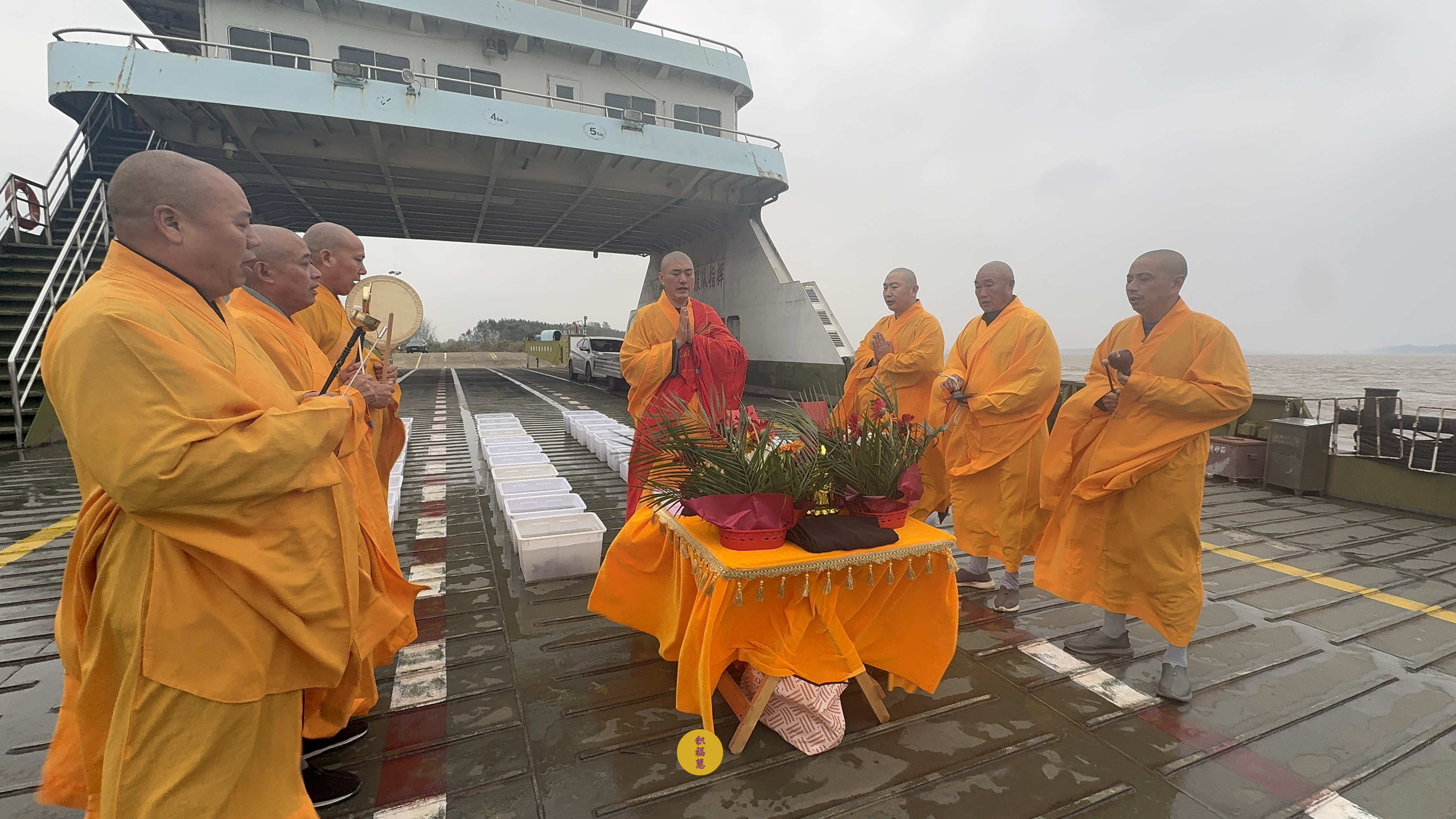 2025年10月21日,乙巳年九月初一,安徽云崖寺诸位法师在安徽省池州市贵池区长江汽车轮渡码头启建乙巳年第十一期长江放生法会,放生鲫鱼、鲤鱼等水族众生。