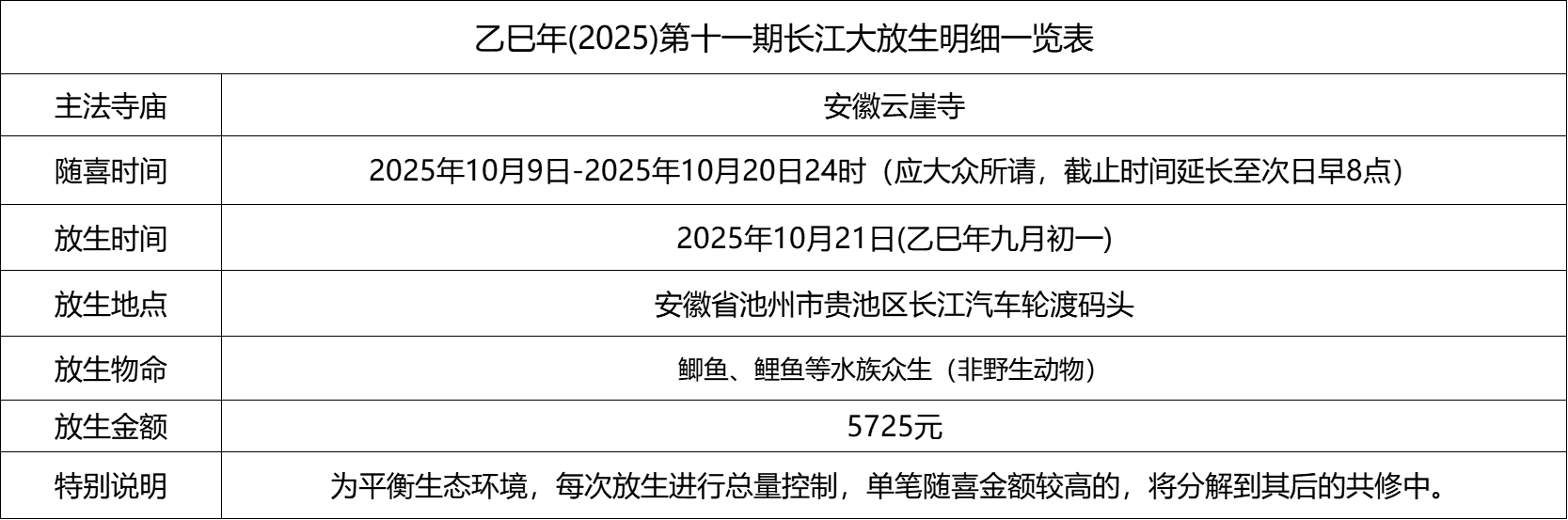 附表:放生共修明细一览表