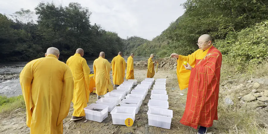 2025年10月29日,乙巳年九月初九,云南安国寺启建摩利支天菩萨圣诞暨重阳节供灯供水法会,如理如法按次第供灯、供水,至2025年11月4日供圆满。同日,安徽云崖寺诸位法师在九华山九华河举行放生法会,放生鲫鱼、鲤鱼、泥鳅等水族众生。
