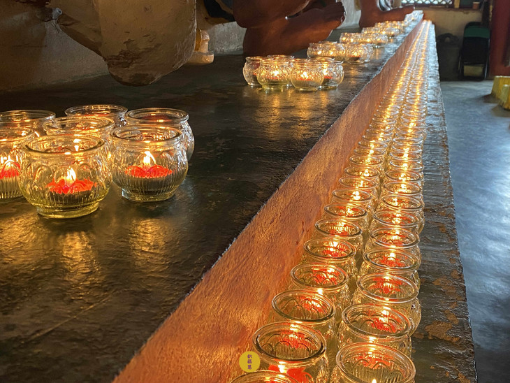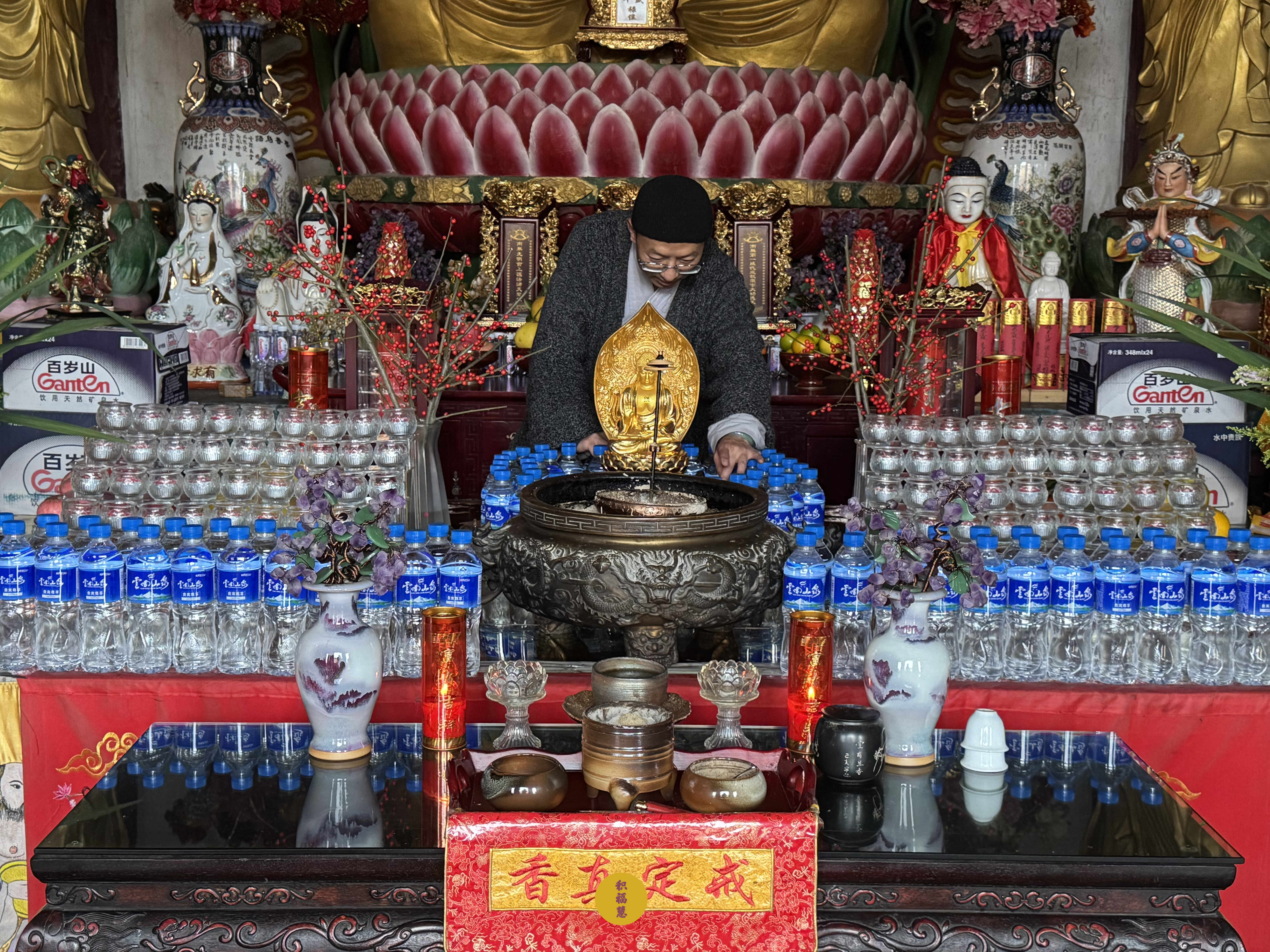 所有供灯、供水、诵经功德,在此刻,汇入大回向:风调雨顺,灾疠不起;兵戈永息,世界和平。现世眷属,福慧增延;过往宗亲,得生安养。法界一切有情,身心安康,远离怖畏;疾疫消除,烦恼蠲除,共证如来净琉璃身。