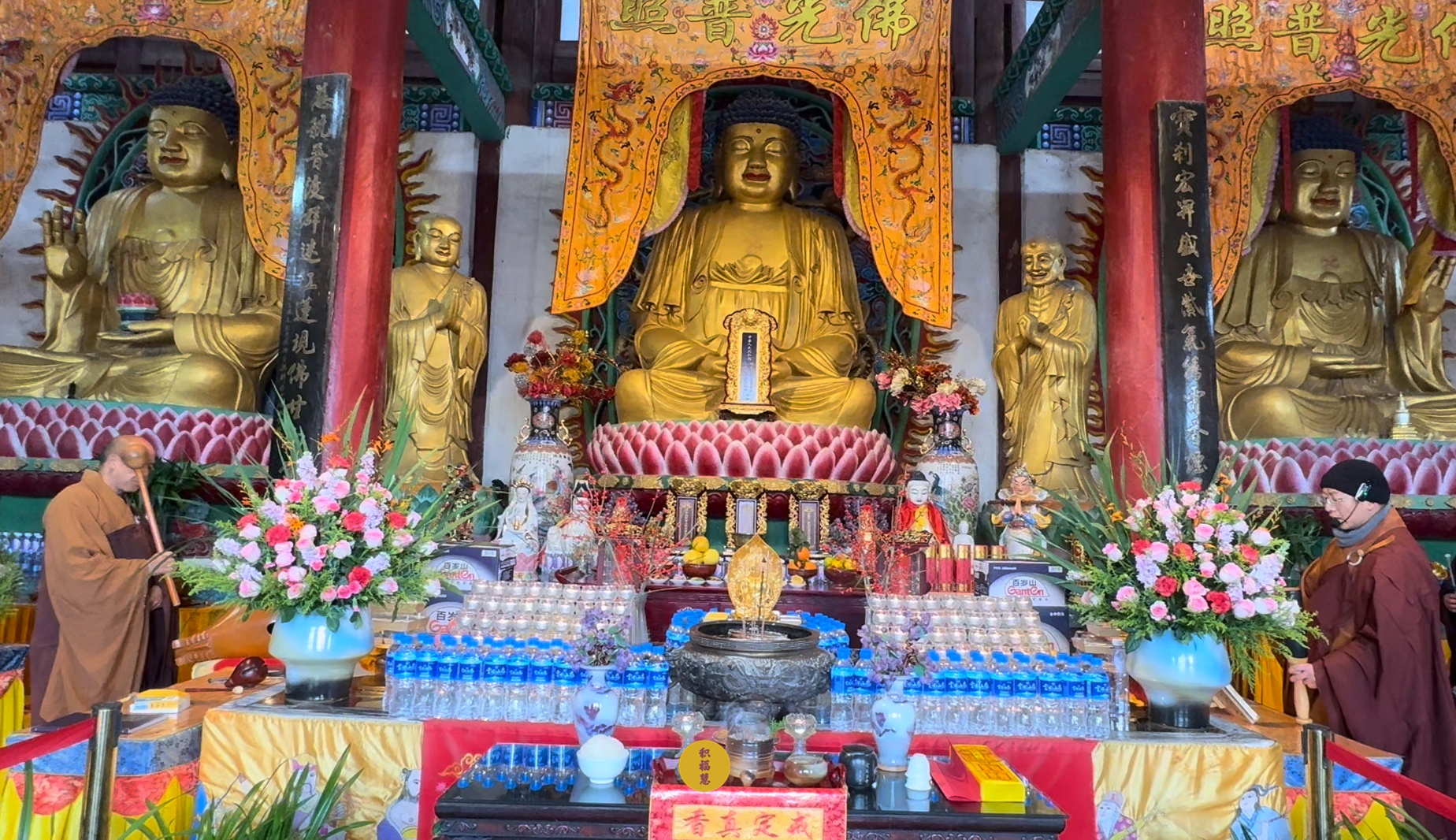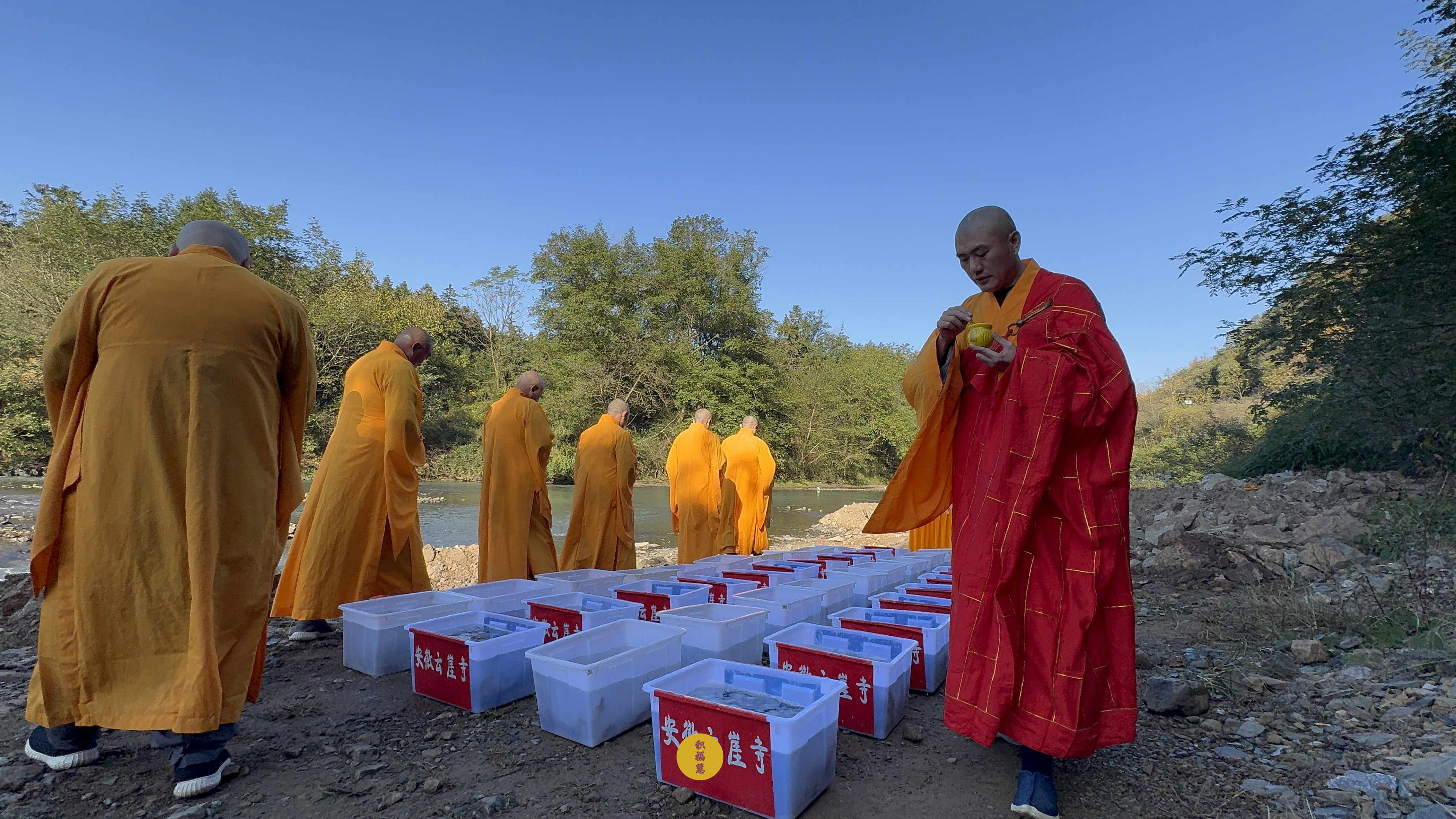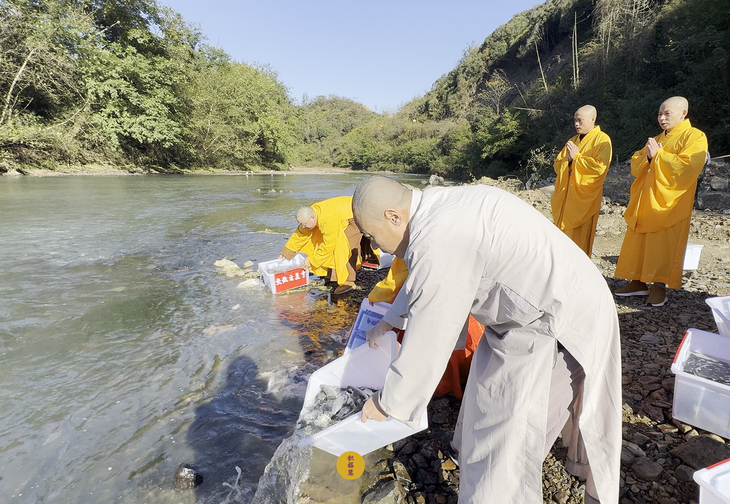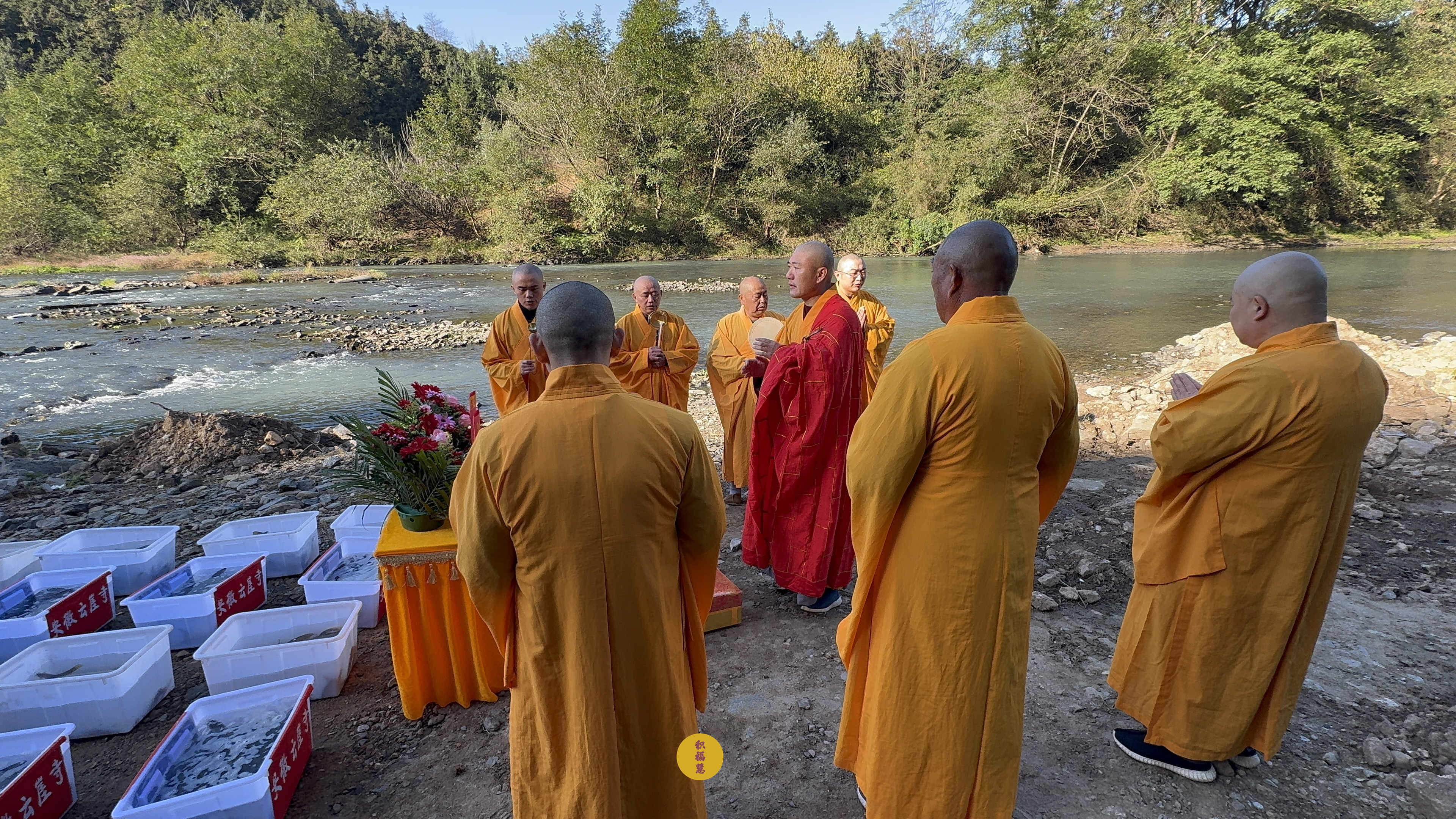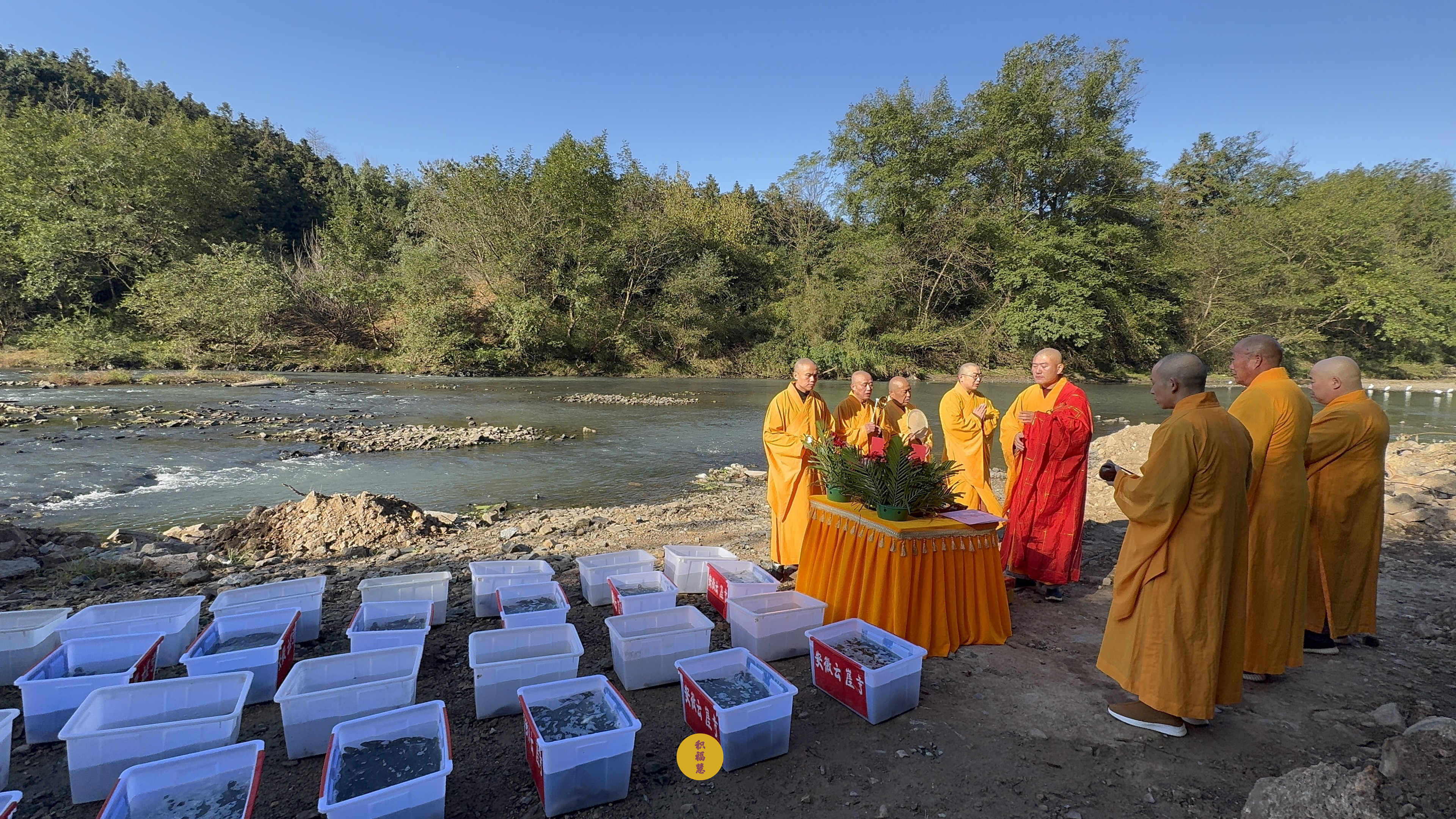 2025年11月19日,乙巳年九月三十,云南安国寺启建药师佛圣诞供灯供水法会,如理如法按次第起供,至2025年11月25日供圆满。同日,安徽云崖寺诸位法师在九华山九华河举行放生法会,放生鲫鱼、鲤鱼、泥鳅等水族众生。