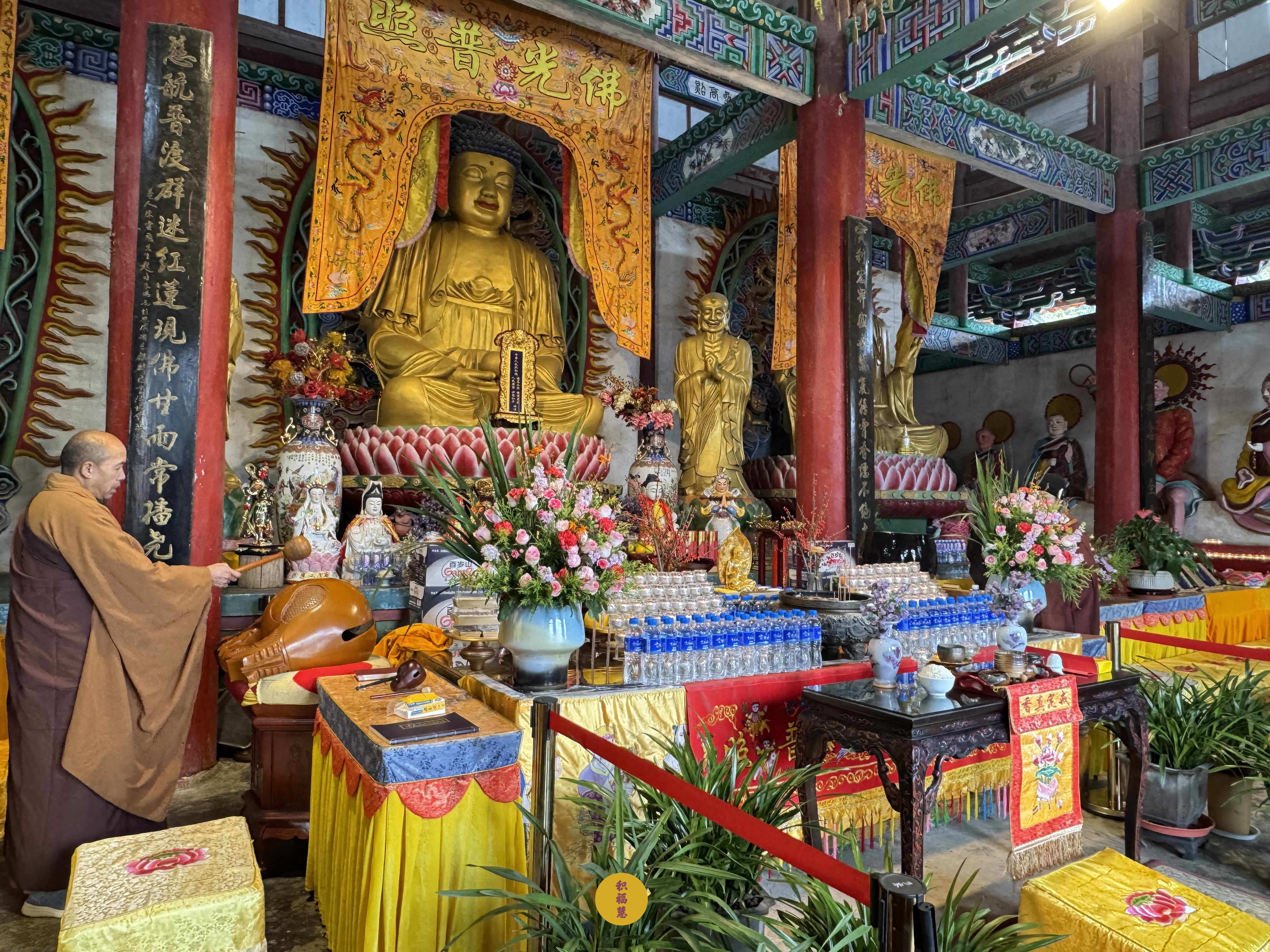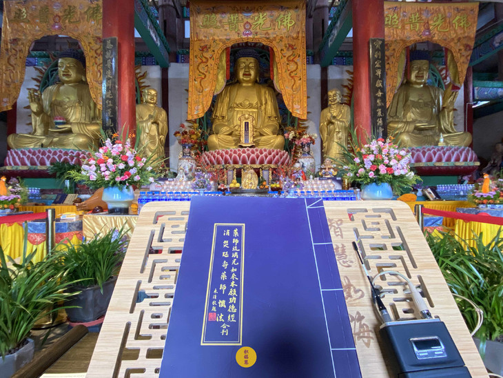 祝祷法会开始。维那师起腔,一声“南无东方净琉璃世界药师琉璃光如来”,如清泉出涧,涤荡尘襟。众声相和,诵《药师琉璃光如来本愿功德经》。