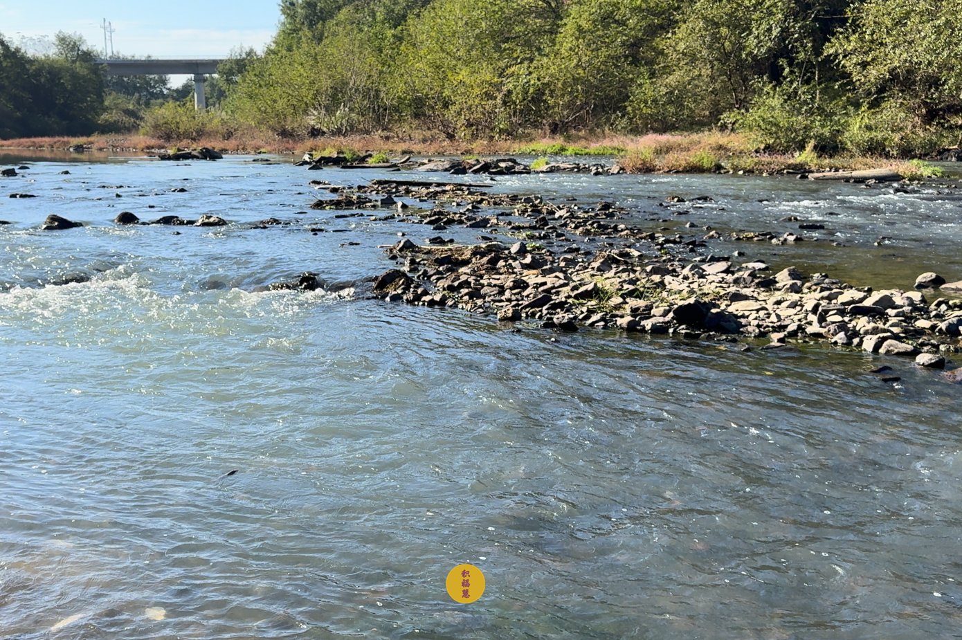 晨光遍撒,待放生物整齐摆放在九华河边。