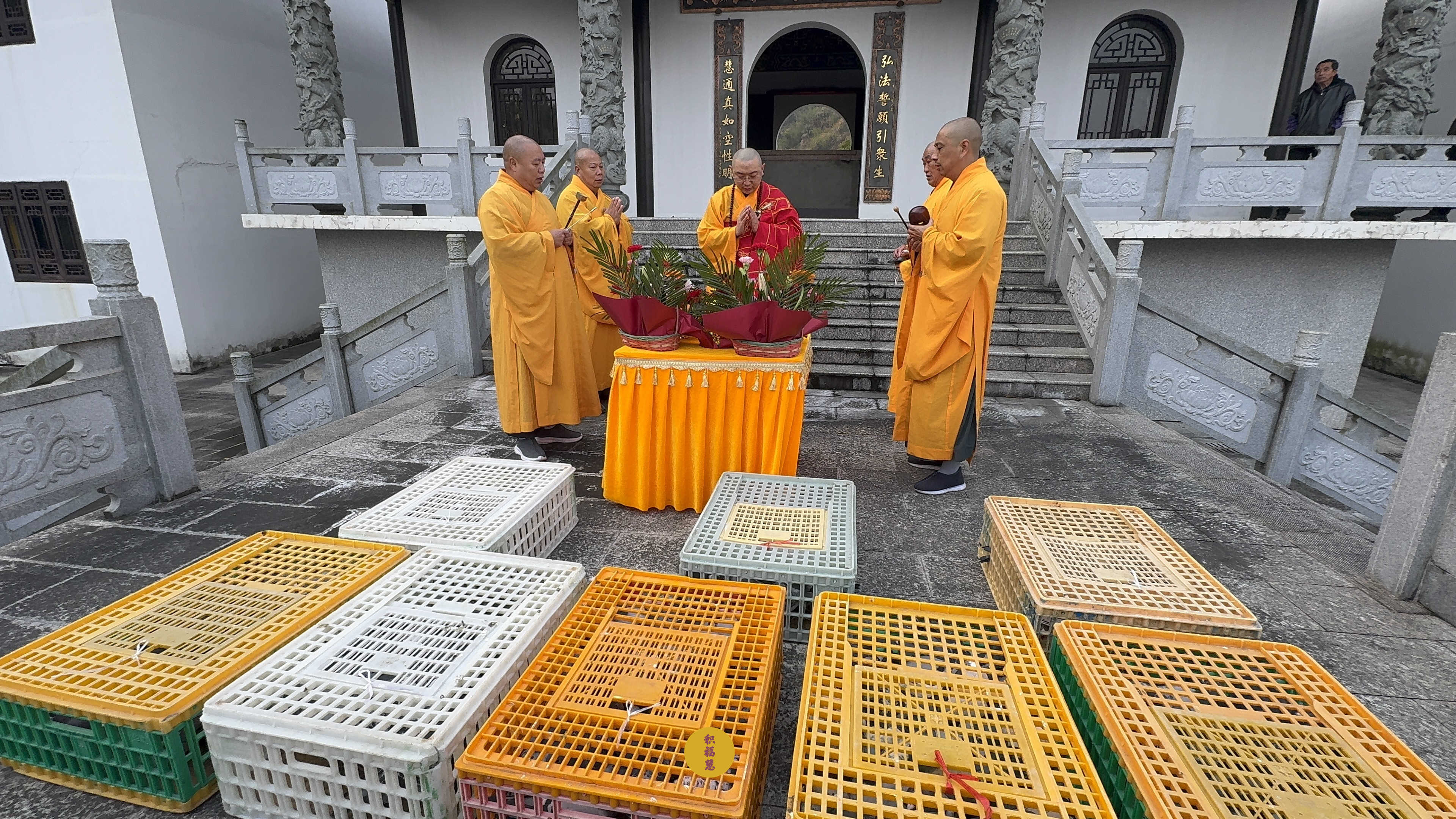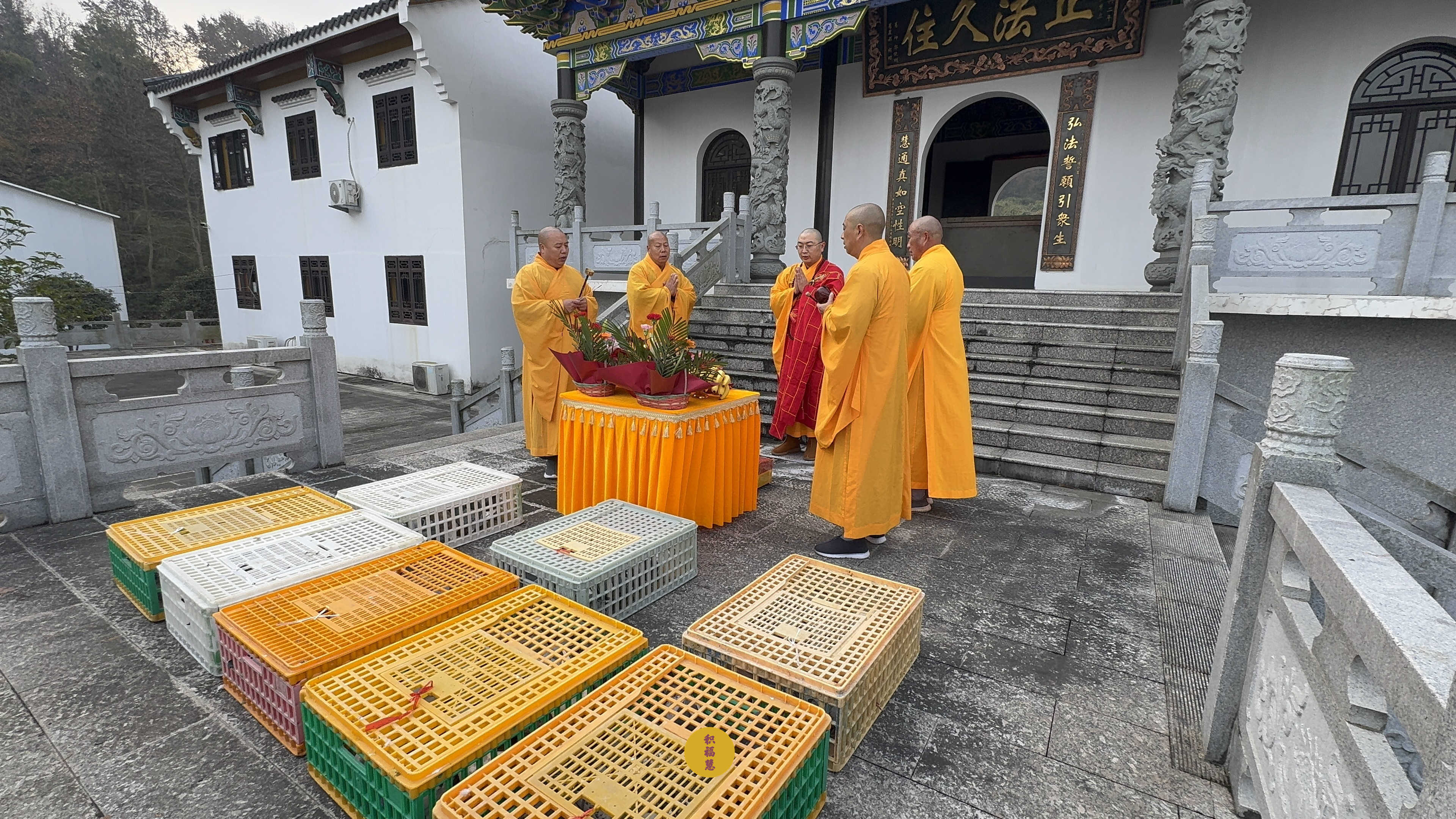 2025年12月4日,乙巳年十月十五,云南安国寺启建下元节供灯法会,如理如法按次第起供,至2025年12月10日供圆满。同日,安徽云崖寺诸位法师在安徽云崖寺举行放生法会,放生鸽子等飞禽众生。