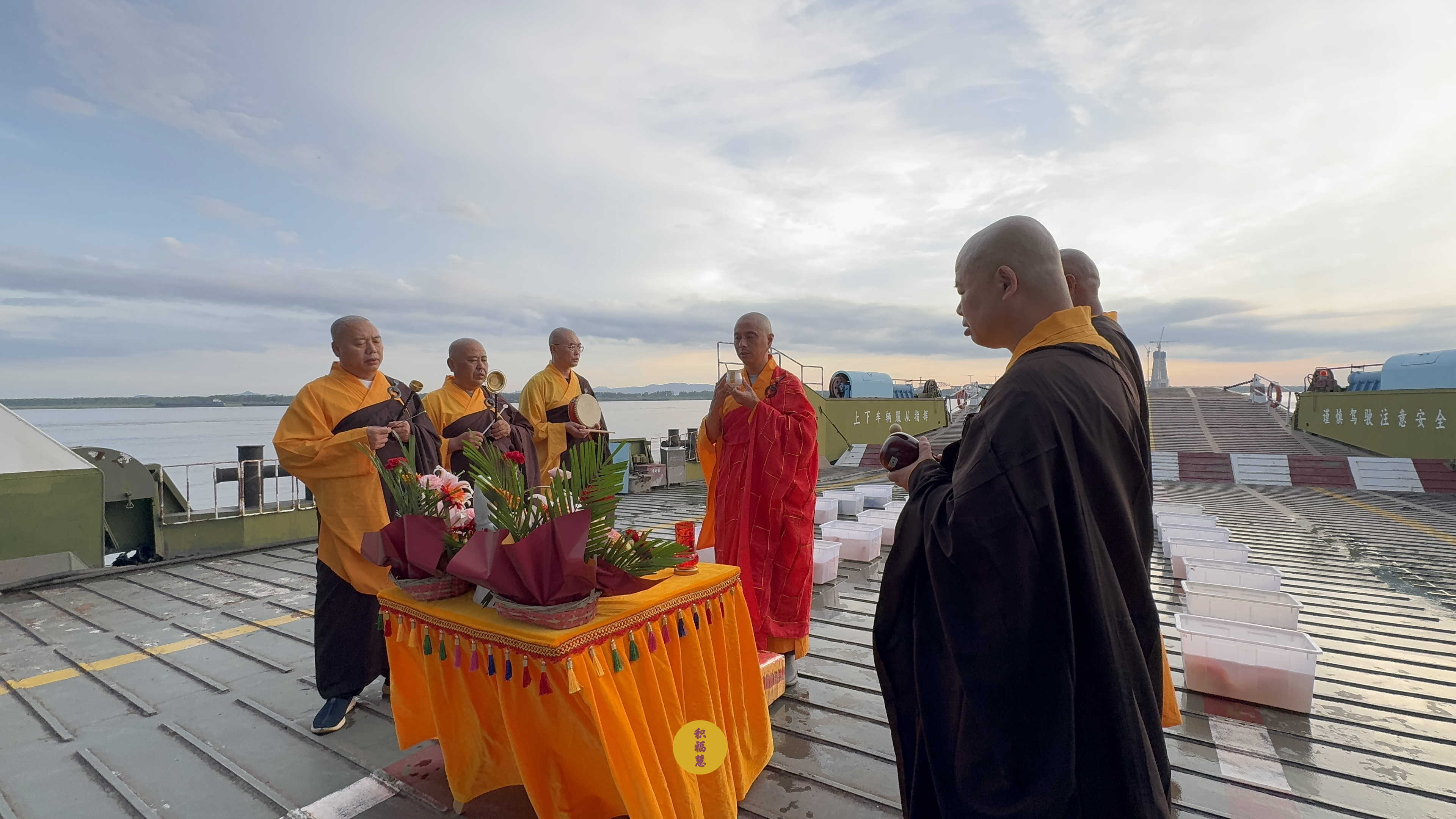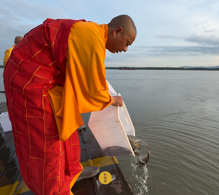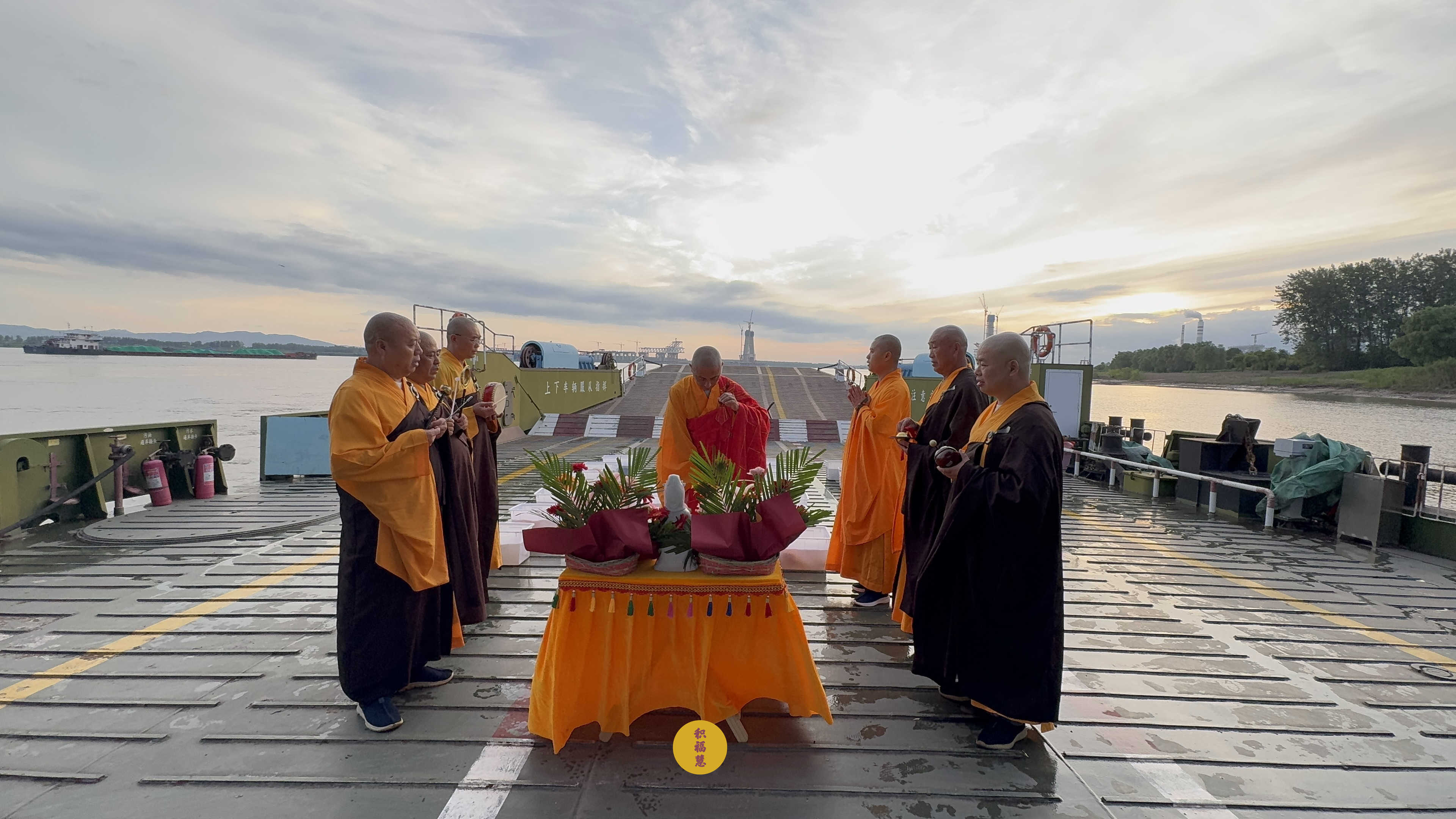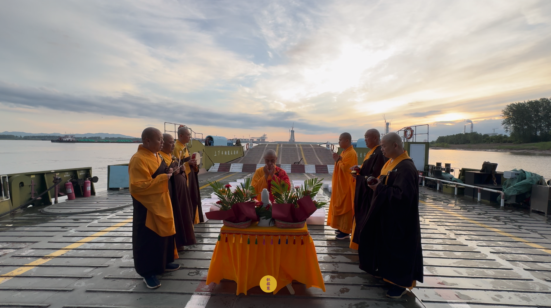 长江轮渡码头上,晨光初透,放生法会正式开始。