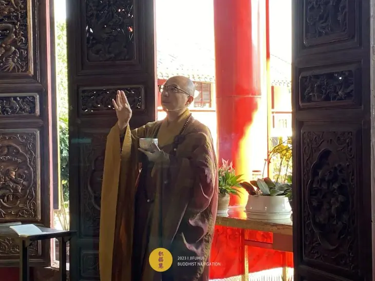 主法法师拈香主法,带领众居士、信众拈香礼佛,虔心齐诵经咒, 献上心香一柱。袅袅升起的檀香中,至诚庆贺观世音菩萨吉日,并祈愿菩萨光降道场,遍洒甘霖,善信人等,业障消除,福慧双增。