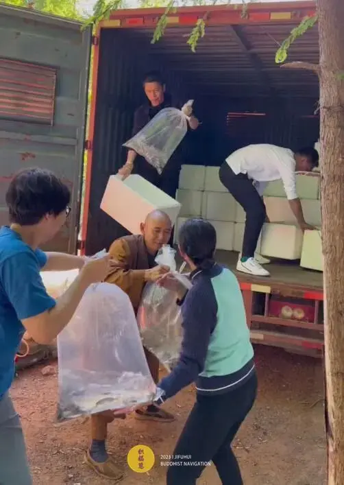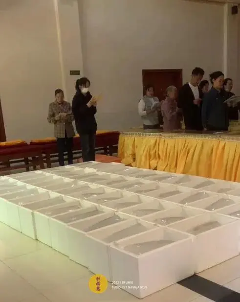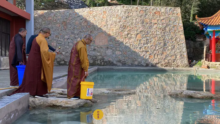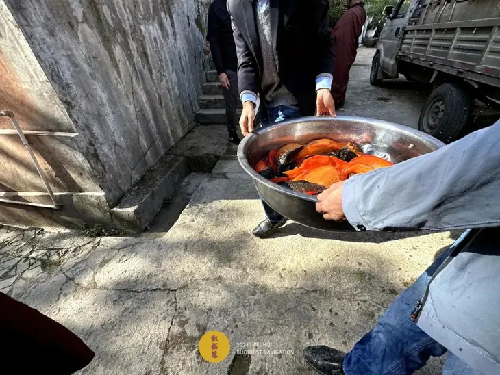 同日,昆明白龙寺内,诸位法师与善信同修举行放生仪轨。恭诵梵呗经咒,皈依仪轨,为放生物命种解脱善根,培植福德善缘。