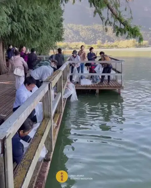 放生仪轨圆满后,物命被运抵昆明西华湿地公园,由大众接力传递到滇池边。