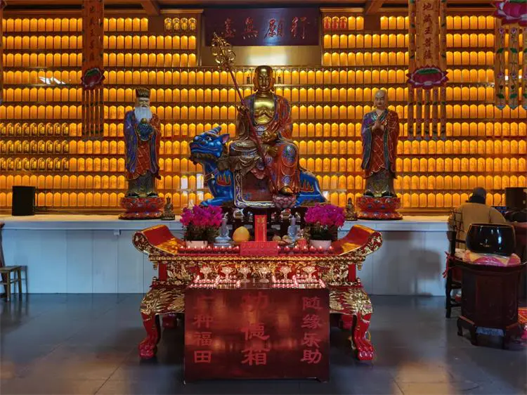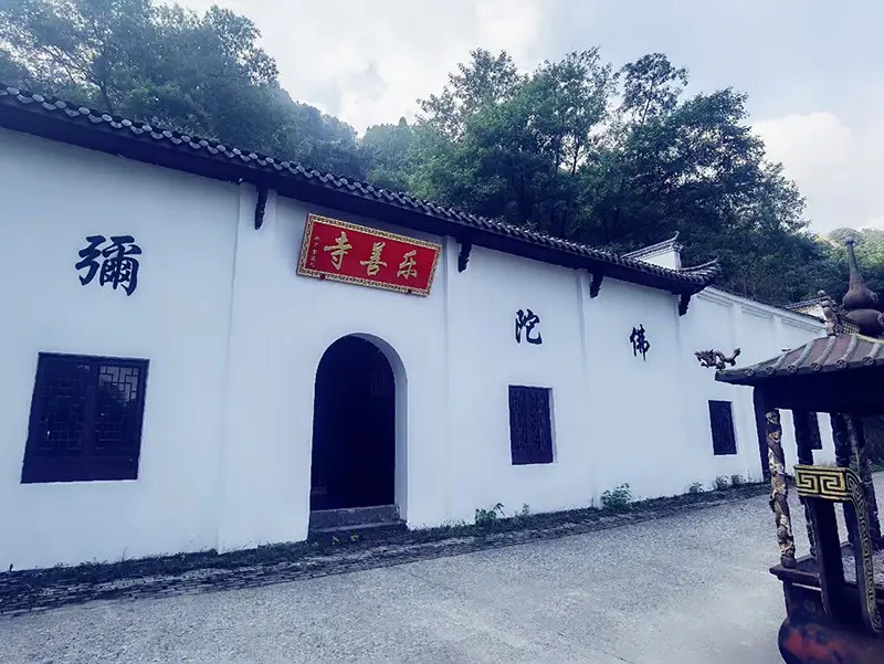 座落天池的“乐善禅寺”是古时候至九华山朝山礼佛的必经之地,环山葱葱、秀水潺潺,灵韵四溢,自然景观沁涤人心。有诗云:“暂作偷闲客,欣逢竹院僧。人随明月到,心与大湖澄。归路何愁晚,回头有佛灯。”