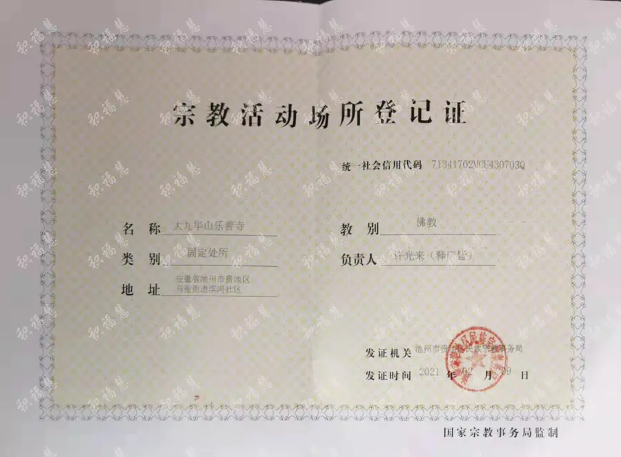 “乐善寺”原名“低岭庵”,旧址位于今池州市贵池区墩上乡低岭村。始建于唐、鼎盛于明,于清末毁于太平天国之乱。清同治年间,释恒修、妙意和尚携手善信复建,1939年再遭日本侵华炮火摧毁。1946年九华山百岁宫指派无相大师三建“乐善禅寺”,岂奈文革期间又为“破四旧”所毁。2018年九华山释广皆法师觅得复寺新址,四建“乐善寺”志业于伊始启动。