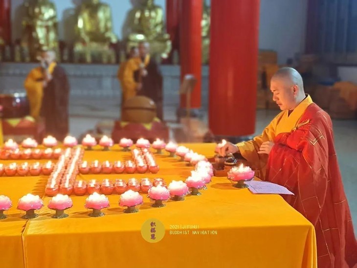 辛丑年(2021)释迦牟尼佛出家日九华山西来禅寺供灯实景