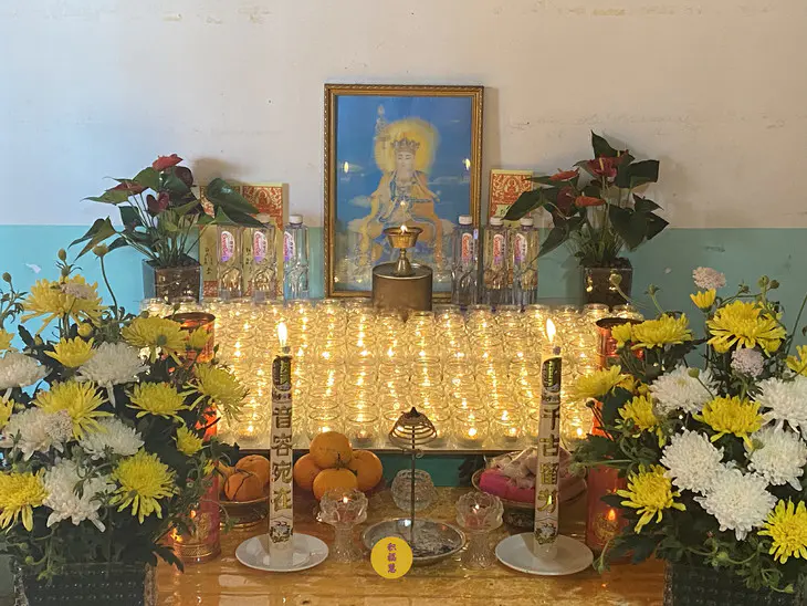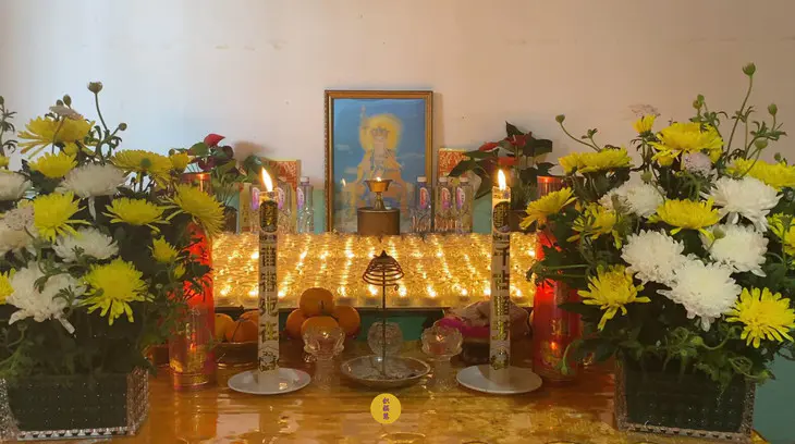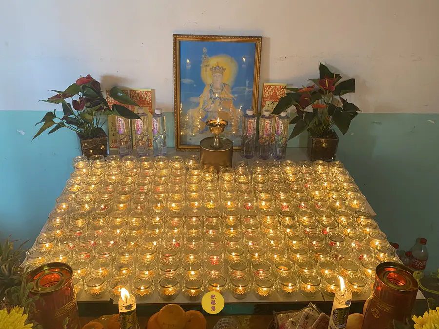 地藏菩萨德像前,供灯圆满
