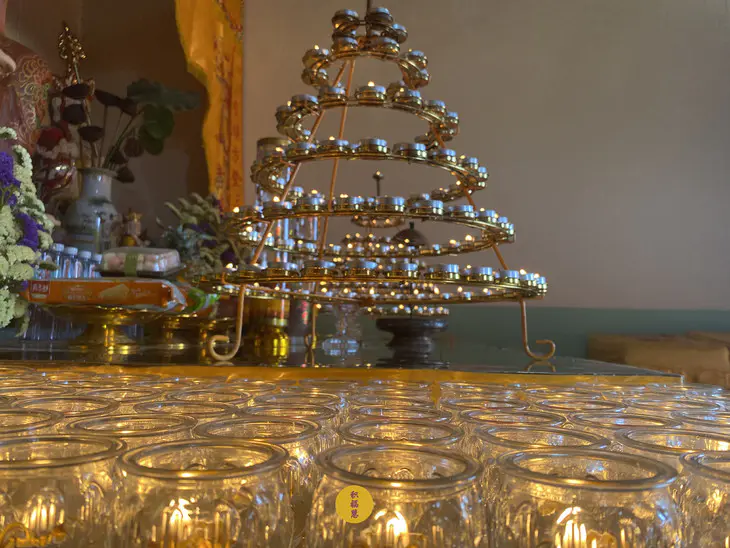 佛前供灯,可以藉由诸佛菩萨的功德力,引导已故的六亲眷属不落入三恶道,渐趋光明、善趣之处。