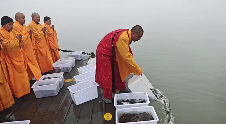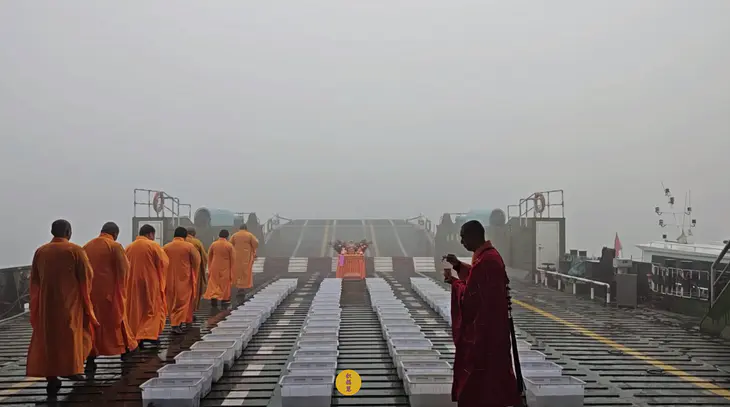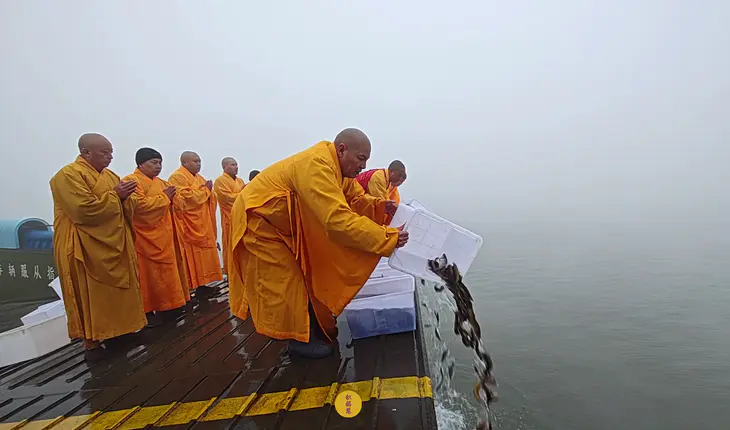 2024年12月19日,甲辰年冬月十九,云南安国寺启建日光菩萨圣诞供灯法会,如理如法按次第起供,至2024年12月25日供圆满。同日,九华山西来禅寺诸位法师在长江轮渡码头举行放生法会,放生鲫鱼、鲤鱼、泥鳅等水族众生。