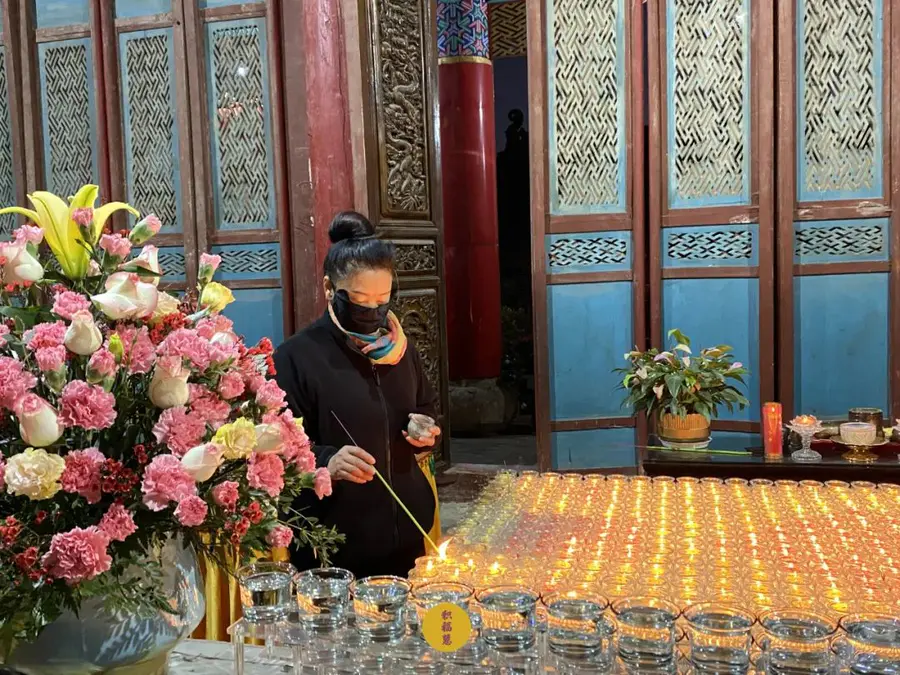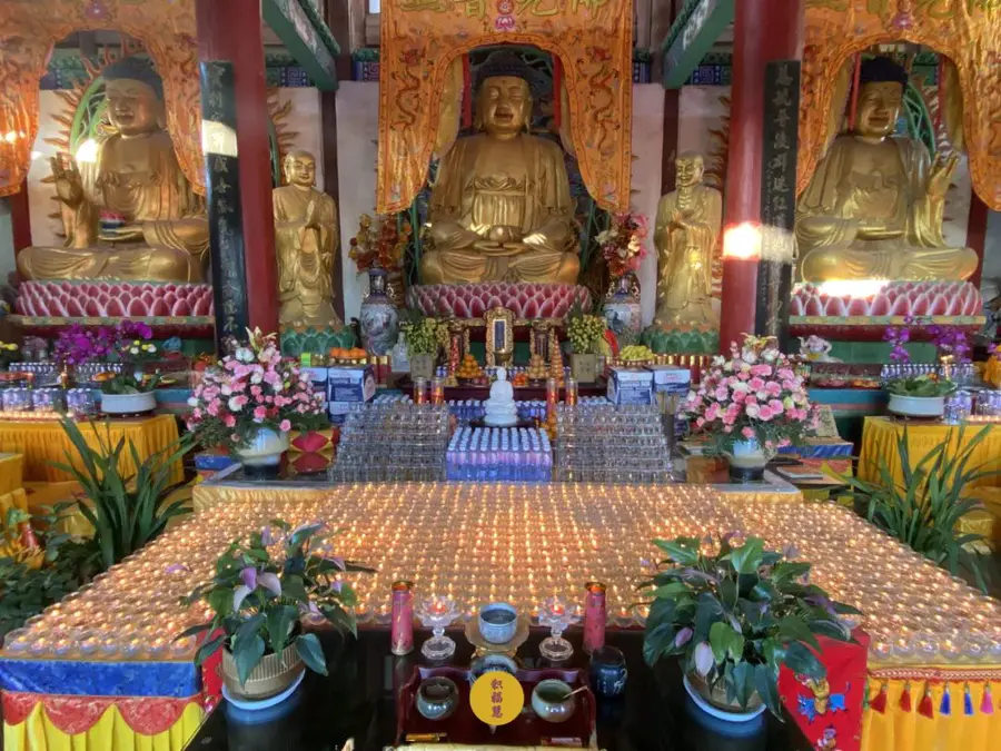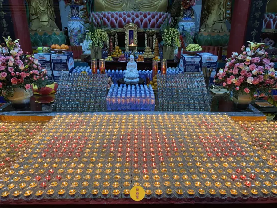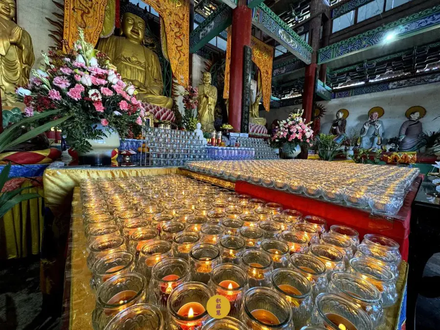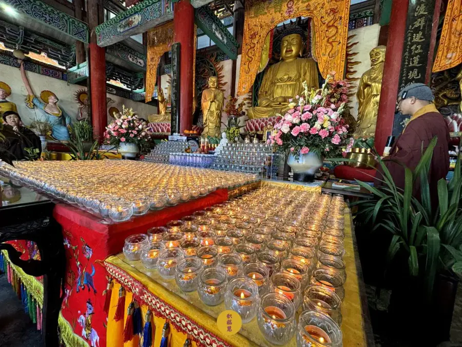 九华山西来禅寺地藏殿内,酥油灯已摆放就位