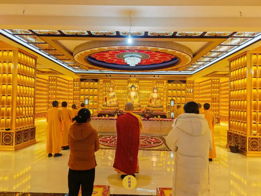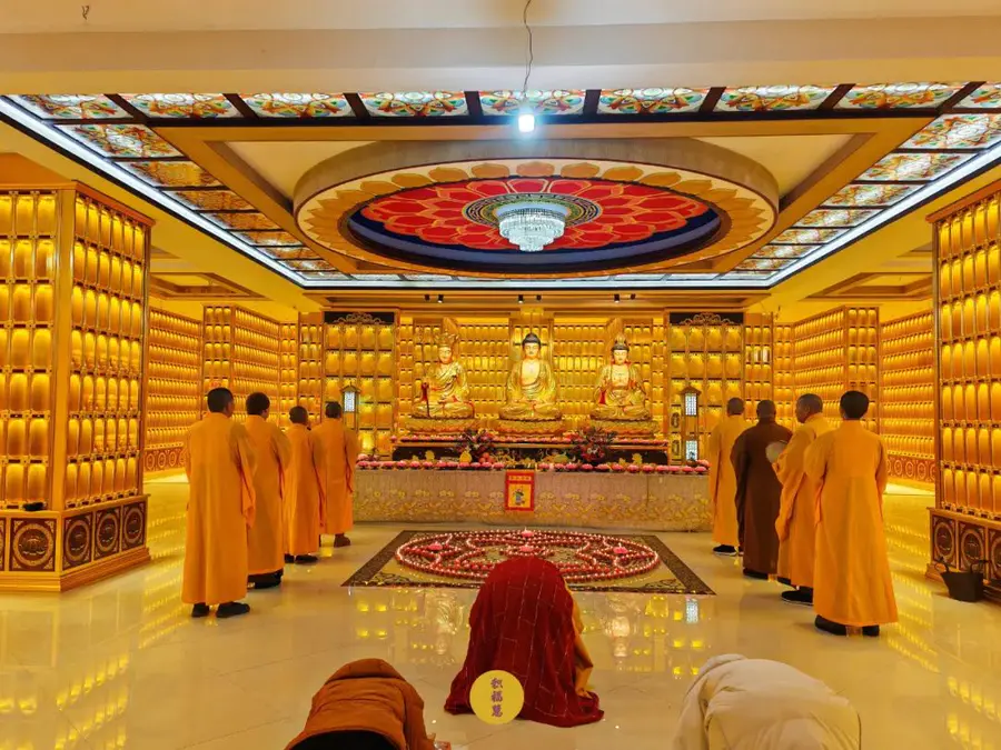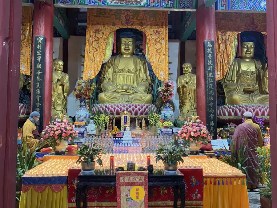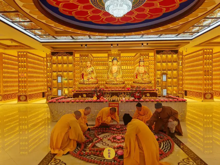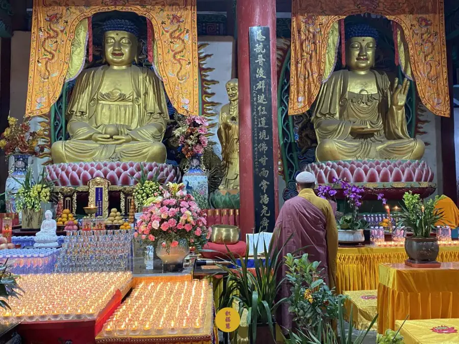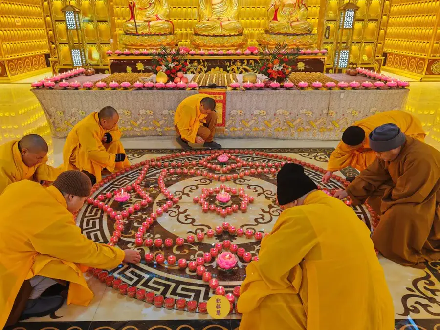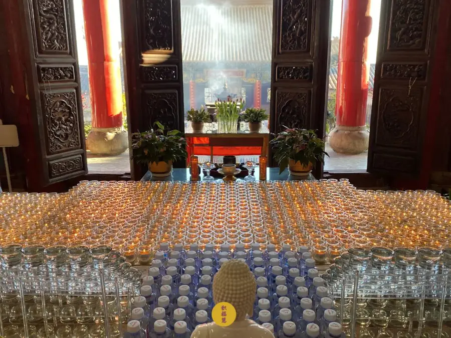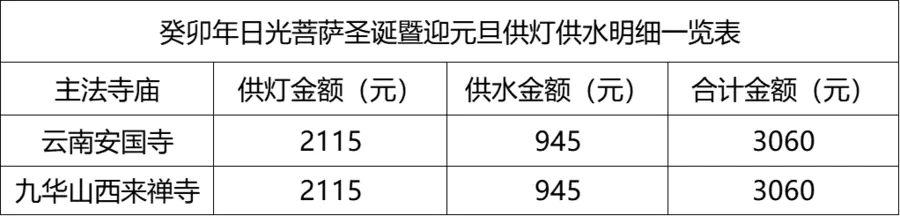 2023年12月31日,癸卯年冬月十九,云南安国寺、九华山西来禅寺分别启建日光菩萨圣诞暨迎元旦供灯供水法会,如理如法按次第起供,直至2024年1月6日供圆满。