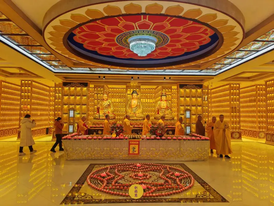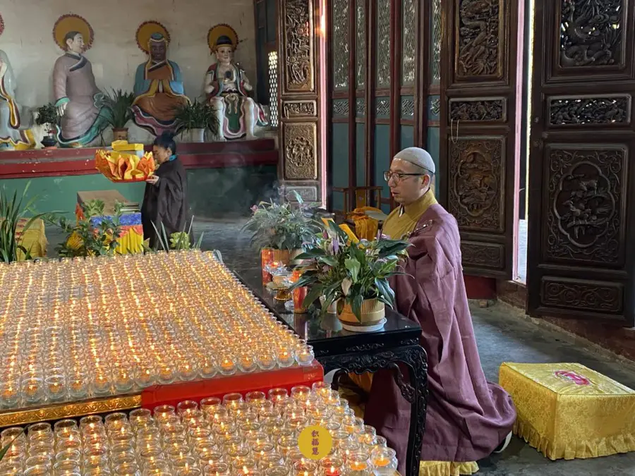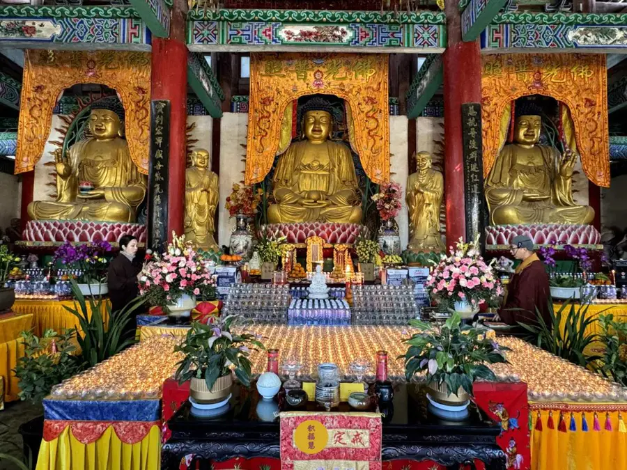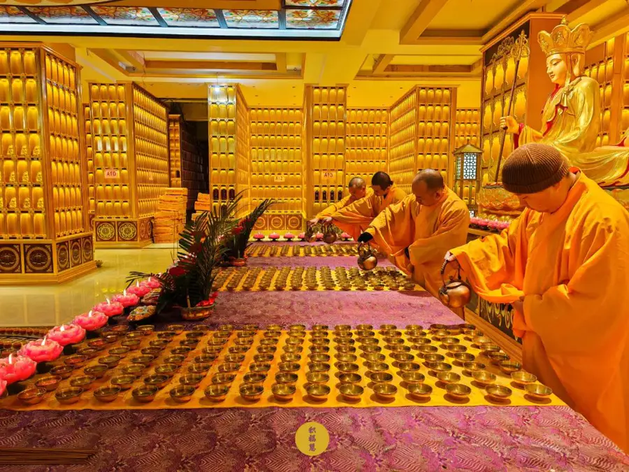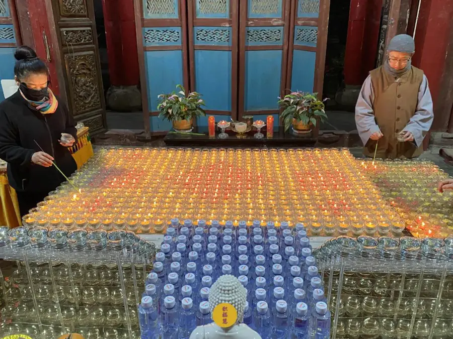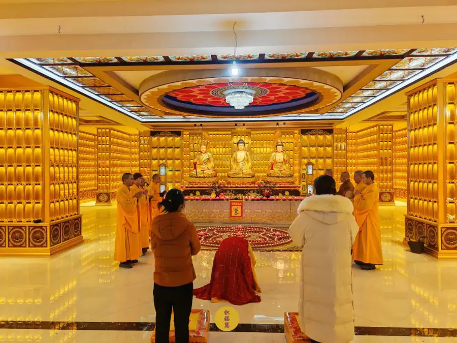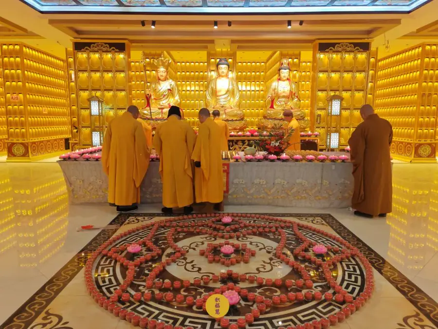 2023年12月31日,癸卯年冬月十九,云南安国寺、九华山西来禅寺分别启建日光菩萨圣诞暨迎元旦供灯供水法会,如理如法按次第起供,直至2024年1月6日供圆满。