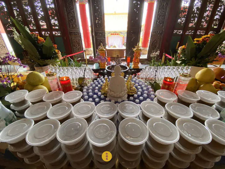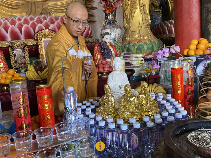 释迦牟尼佛成道日当天,法师领众供灯供水